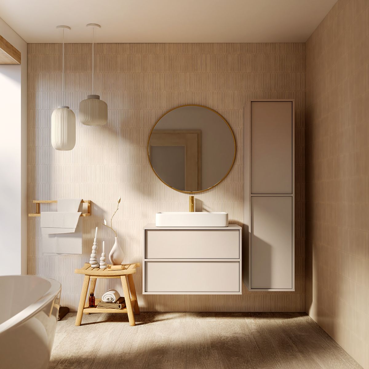 Skříňka Mossy s kašmírovým povrchem a dvěma zásuvkami pro moderní koupelny. .. více