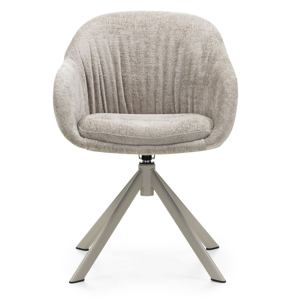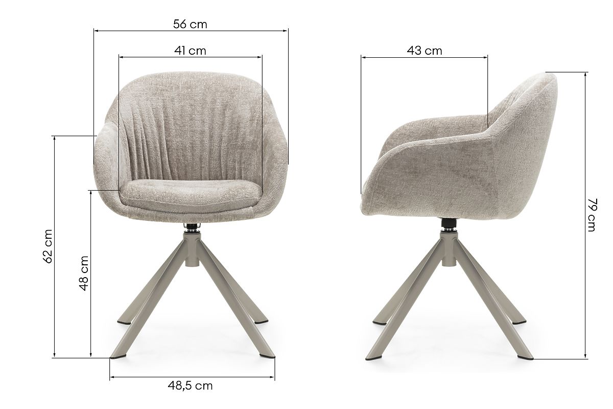 Ponořte se do pohodlí, které vás obklopí od prvního kontaktu. Otočná židle KAIRO není jen stylový nábytek, ale především pozvánka k dennímu odpočinku. Měkká, příjemná na dotek látka v teplém, béžovém odstínu dodává interiéru útulnost a eleganci, zatímco jemné řasení na opěradle jemně podtrhuje její moderní charakter. Otočné sedadlo o 360° zajišťuje volnost pohybu. Ideální jak pro domácí kancelář, tak pro relaxační prostor. Pohodlné područky poskytují pocit stability a uvolnění, kdykoli to potřebujete. Stabilní konstrukce založená na kovových nohách v béžovo-šedém odstínu harmonicky doplňuje celek, vytvářejíc výjimečný kus nábytku s nadčasovým designem. KAIRO je kombinací estetiky a funkčnosti, která dodá vašemu interiéru třídu a vám – chvíli jen pro sebe.