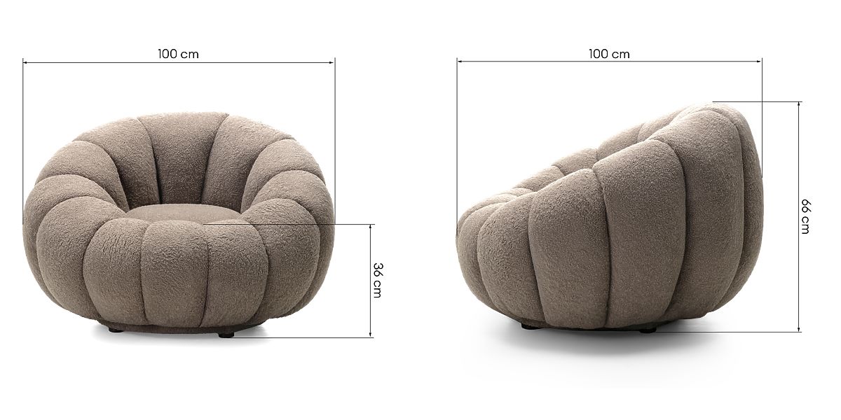 Lukafurniture.cz » Křesla a sezení / Křesla / Relaxační křeslo Venezia cappuccino s otočnou základnou, boucle, oblé tvary