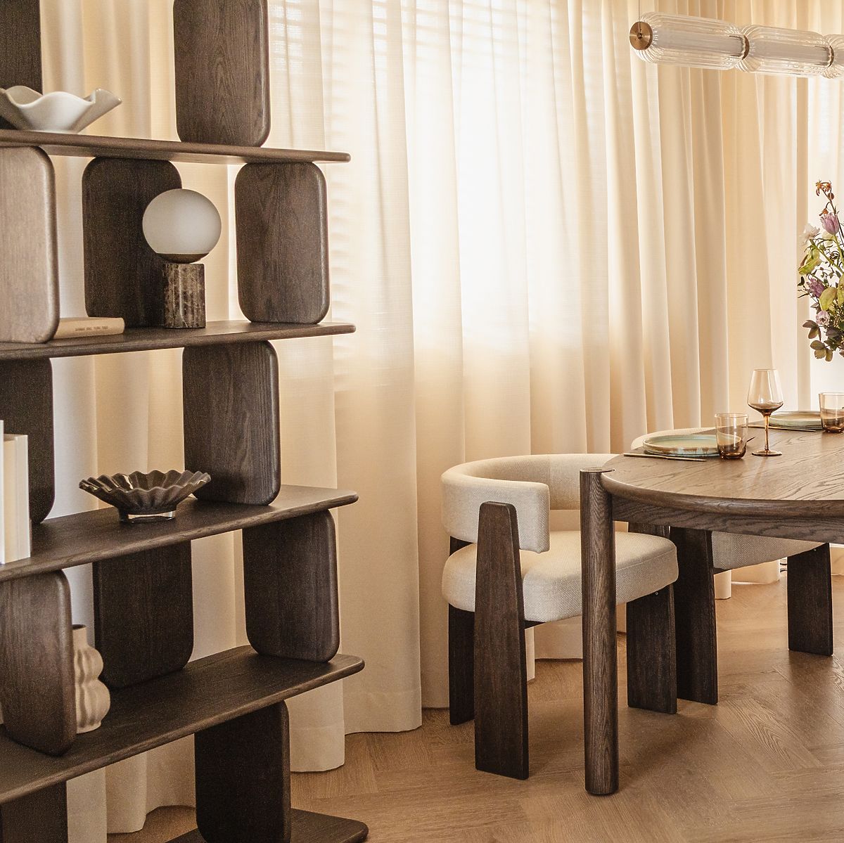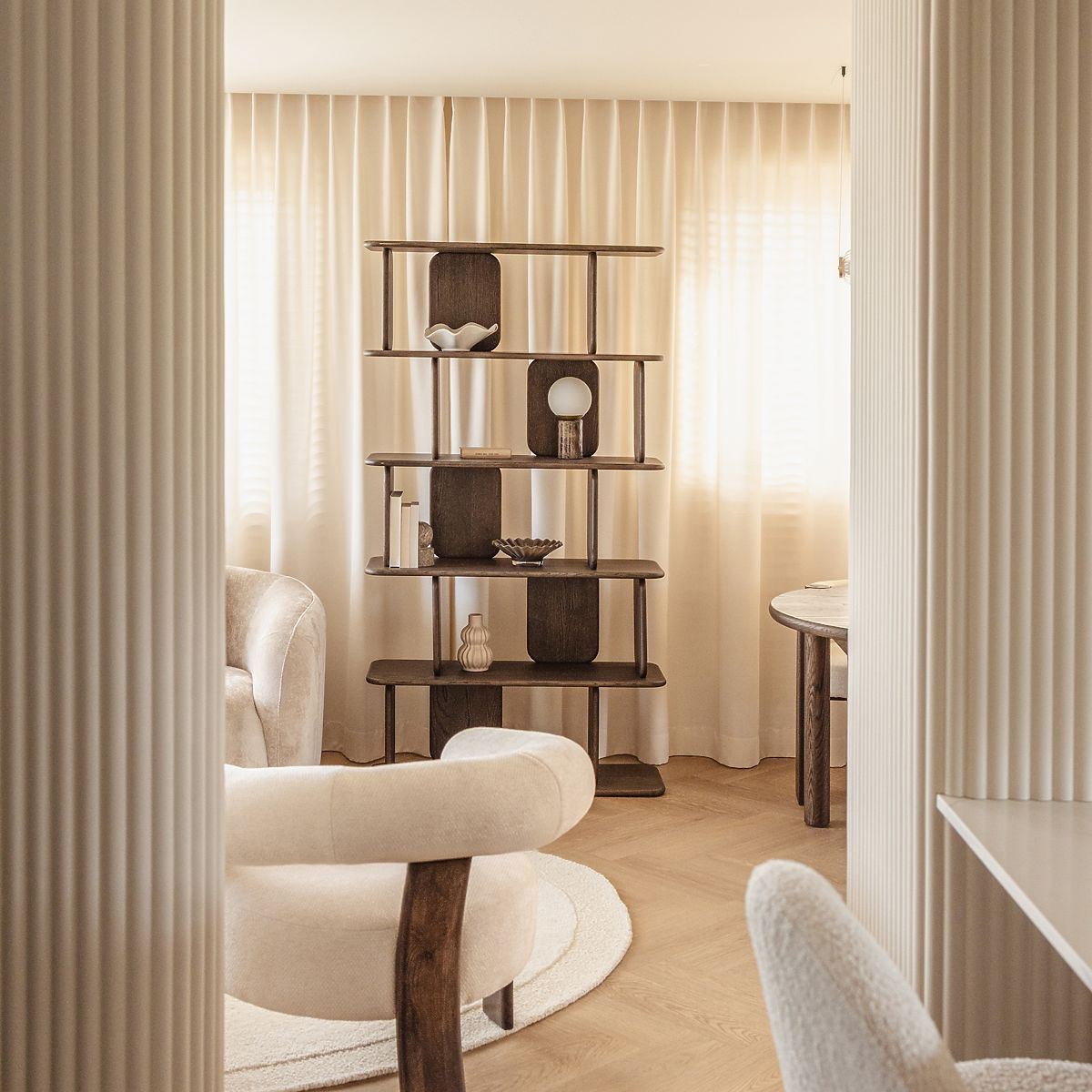 Zaoblený regál z masivního dubu s dýhou v odstínu espresso. .. více