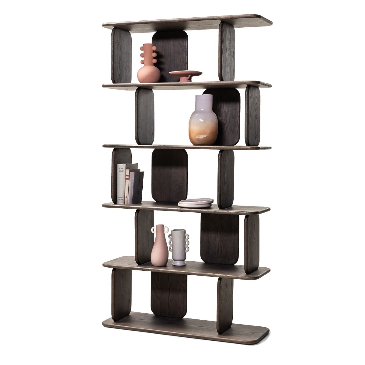 Lukafurniture.cz » Nábytek / Regály / Regál Fonticelle zaoblený, masivní dubové dřevo, dýha, espresso