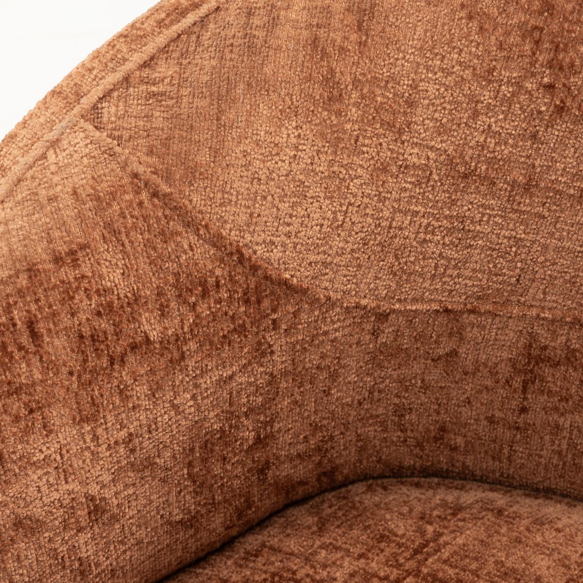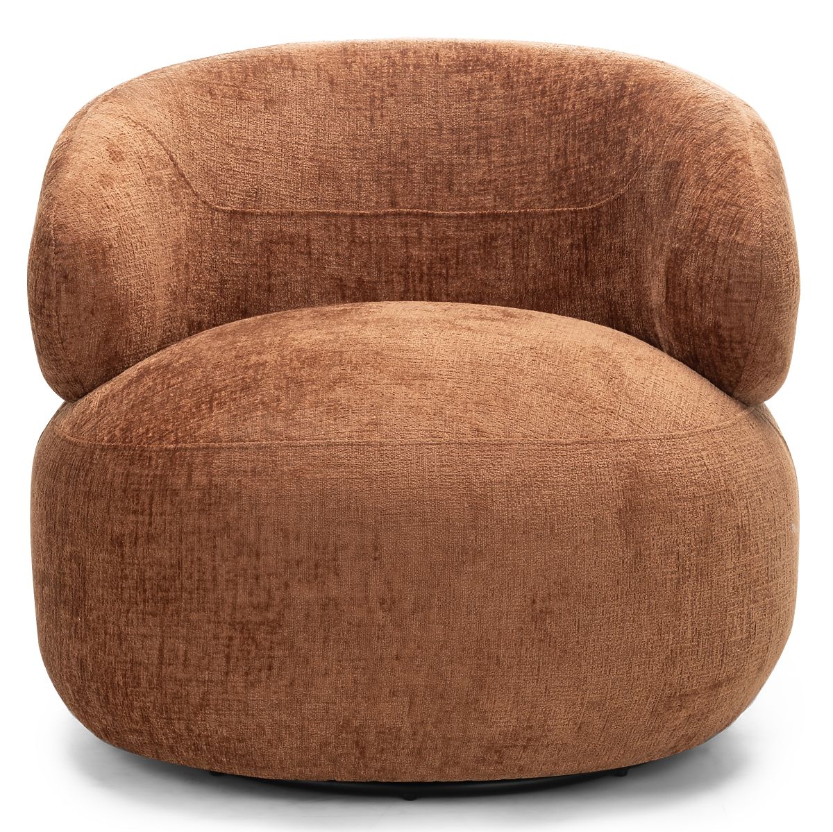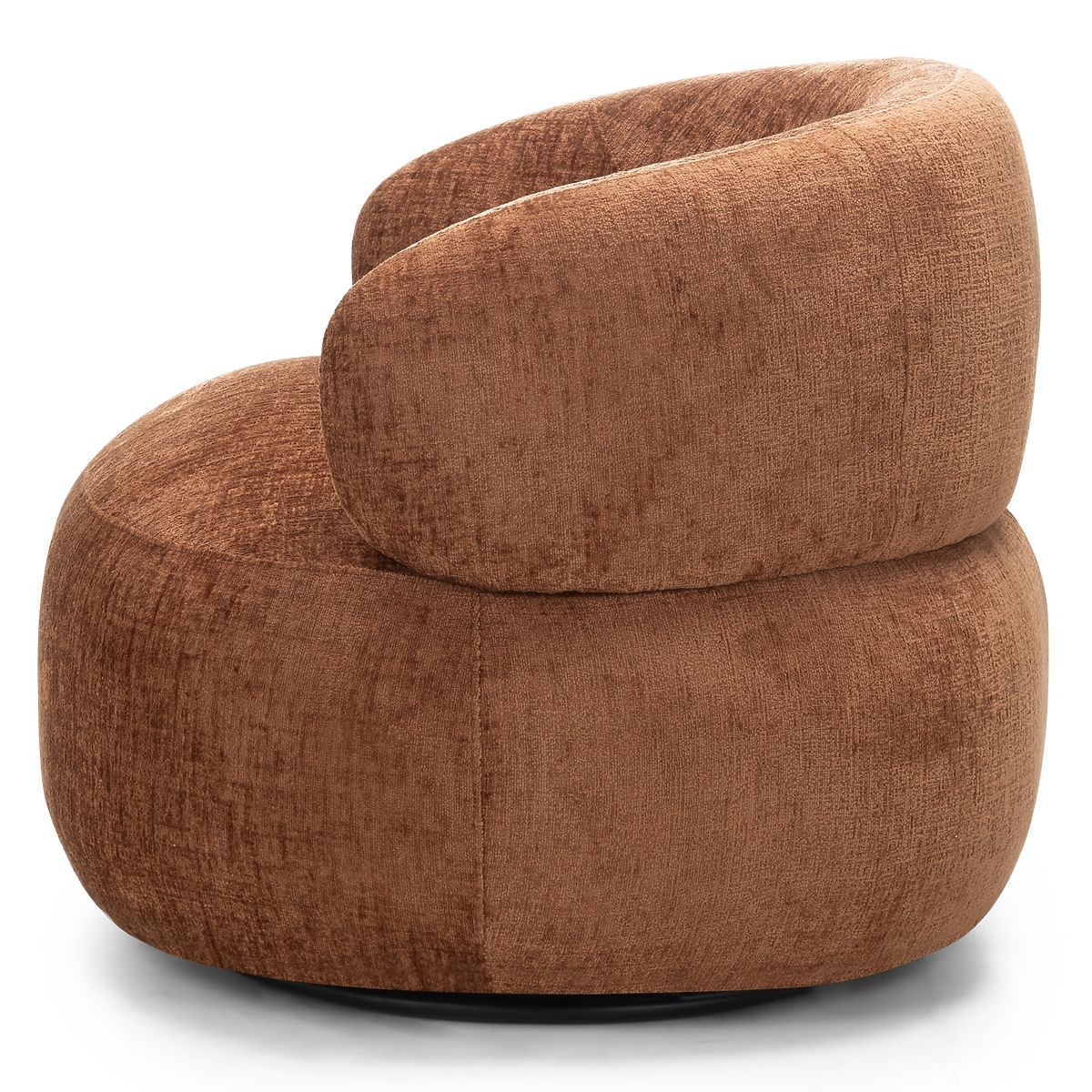 Otočná židle Rumble s měděným potahem a oblými tvary. .. více
