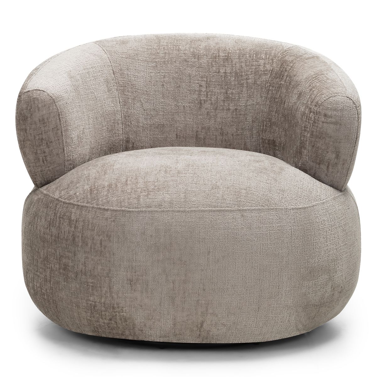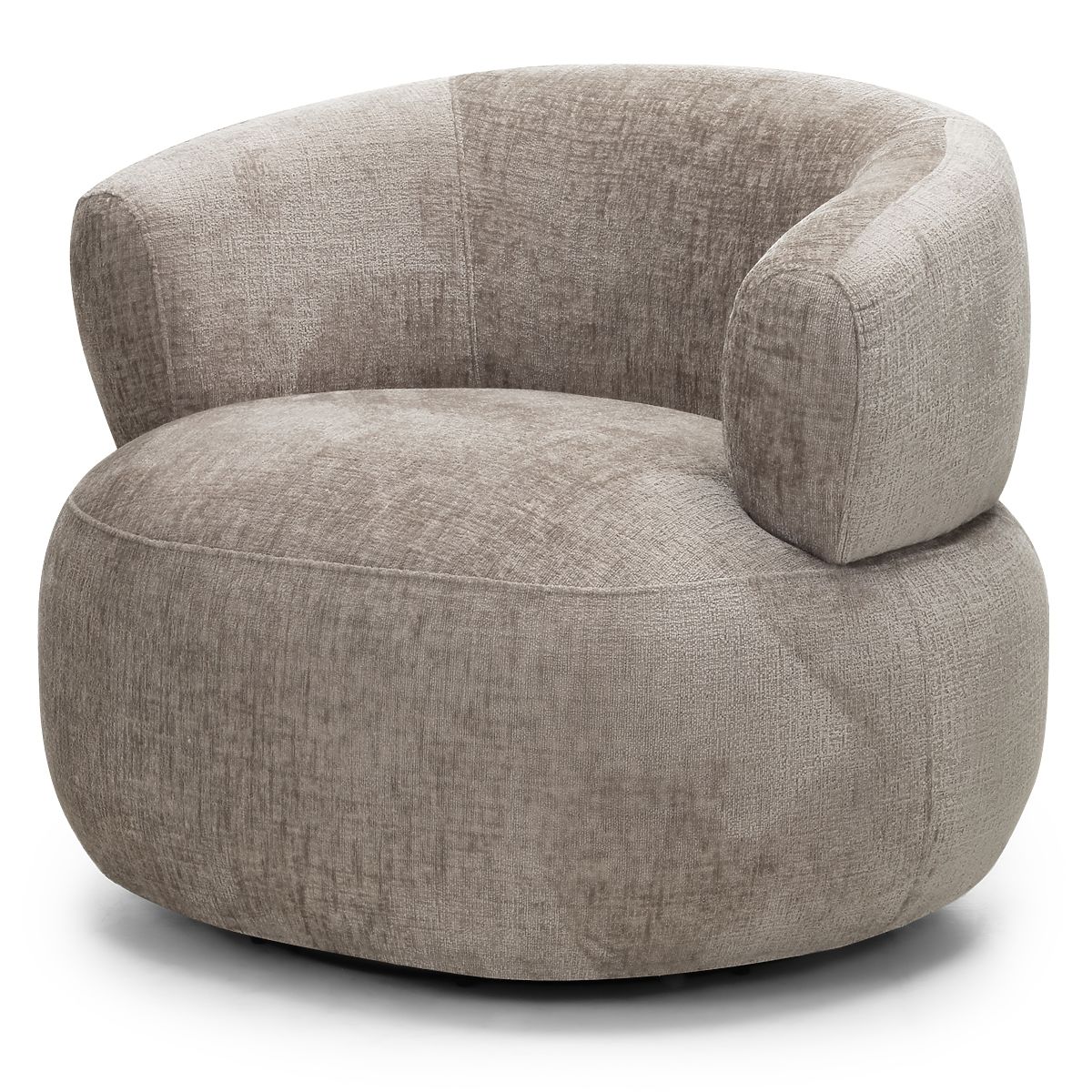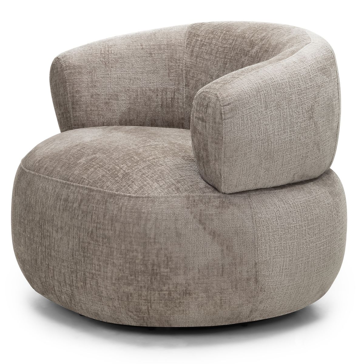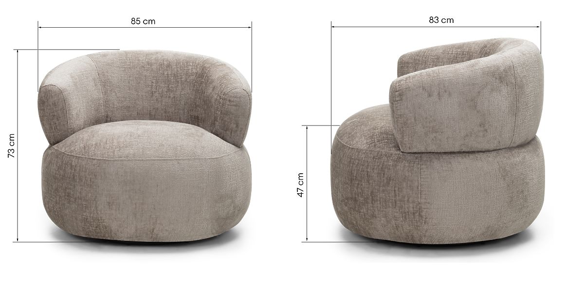 Otočná židle Ambi s béžovým šenilovým potahem a oblíbenými tvary. .. více