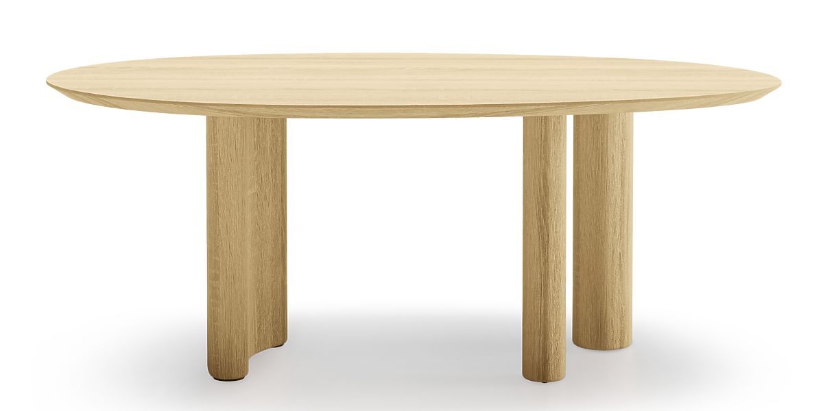 Oválný stůl Segretto s přírodním dubovým povrchem a třemi pevnými nohami. .. více
