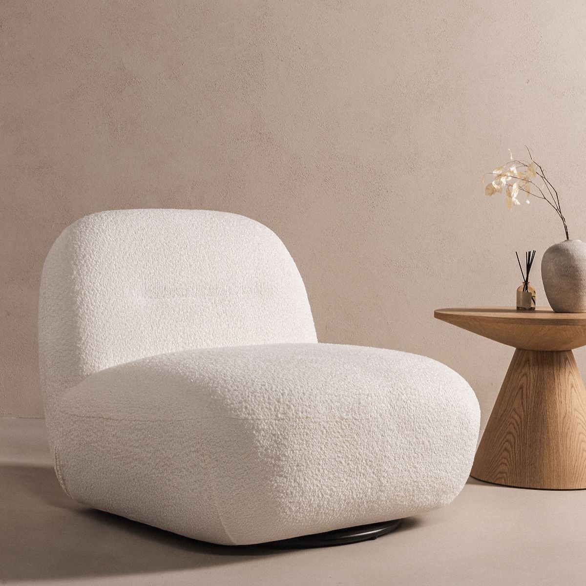 Designové křeslo Giorgia s otočnou základnou a krémovou tkaninou boucle. .. více
