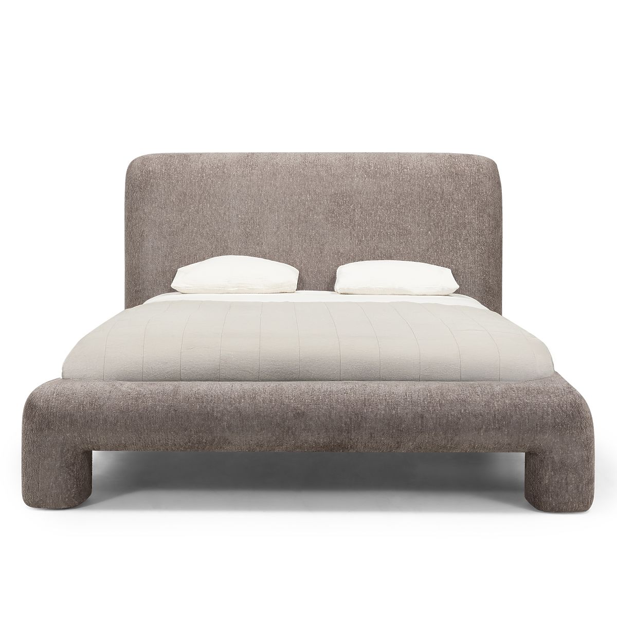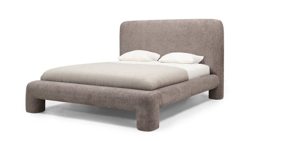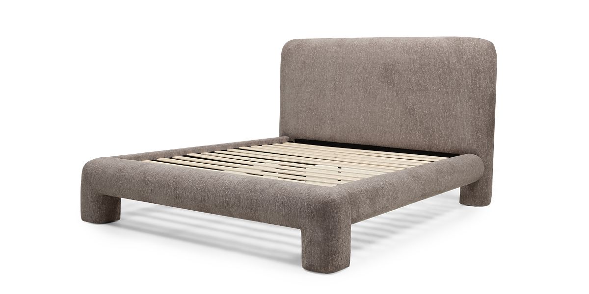 Čalouněná postel Rolly s roštem a zaoblenými tvary v hnědé barvě. .. více