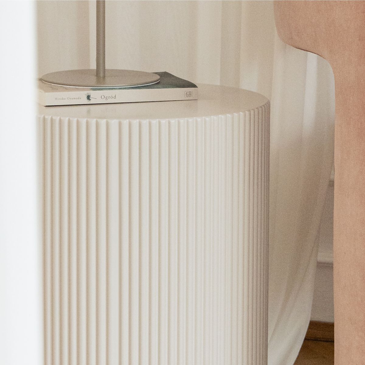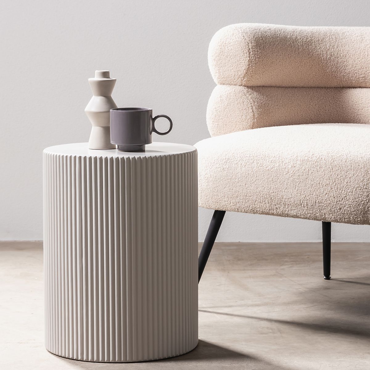 Lukafurniture.cz » Stoly a stolky / Konferenční stolky / Boční stolek Ermanno, 35 cm, šedobéžový, rýhovaný