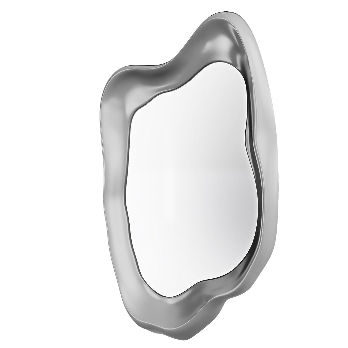 Závěsné zrcadlo Leonardo s nepravidelným tvarem a stříbrným rámem. .. více
