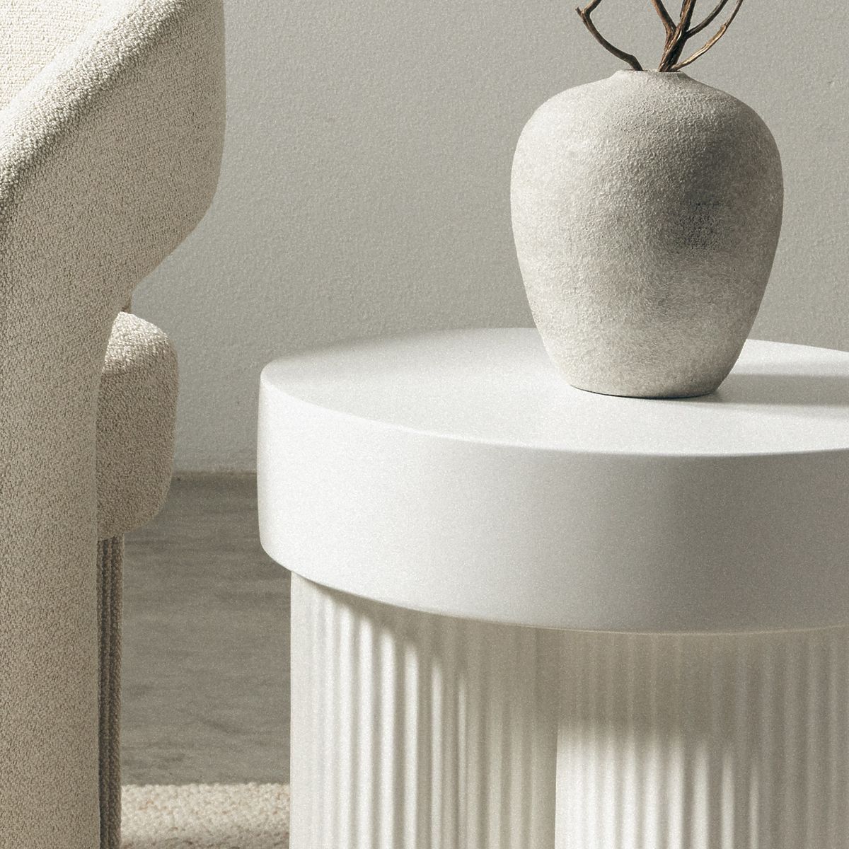 Lukafurniture.cz » Stoly a stolky / Konferenční stolky / Konferenční stolek Salerno 45 cm, kulatý, bílý, s drážkováním