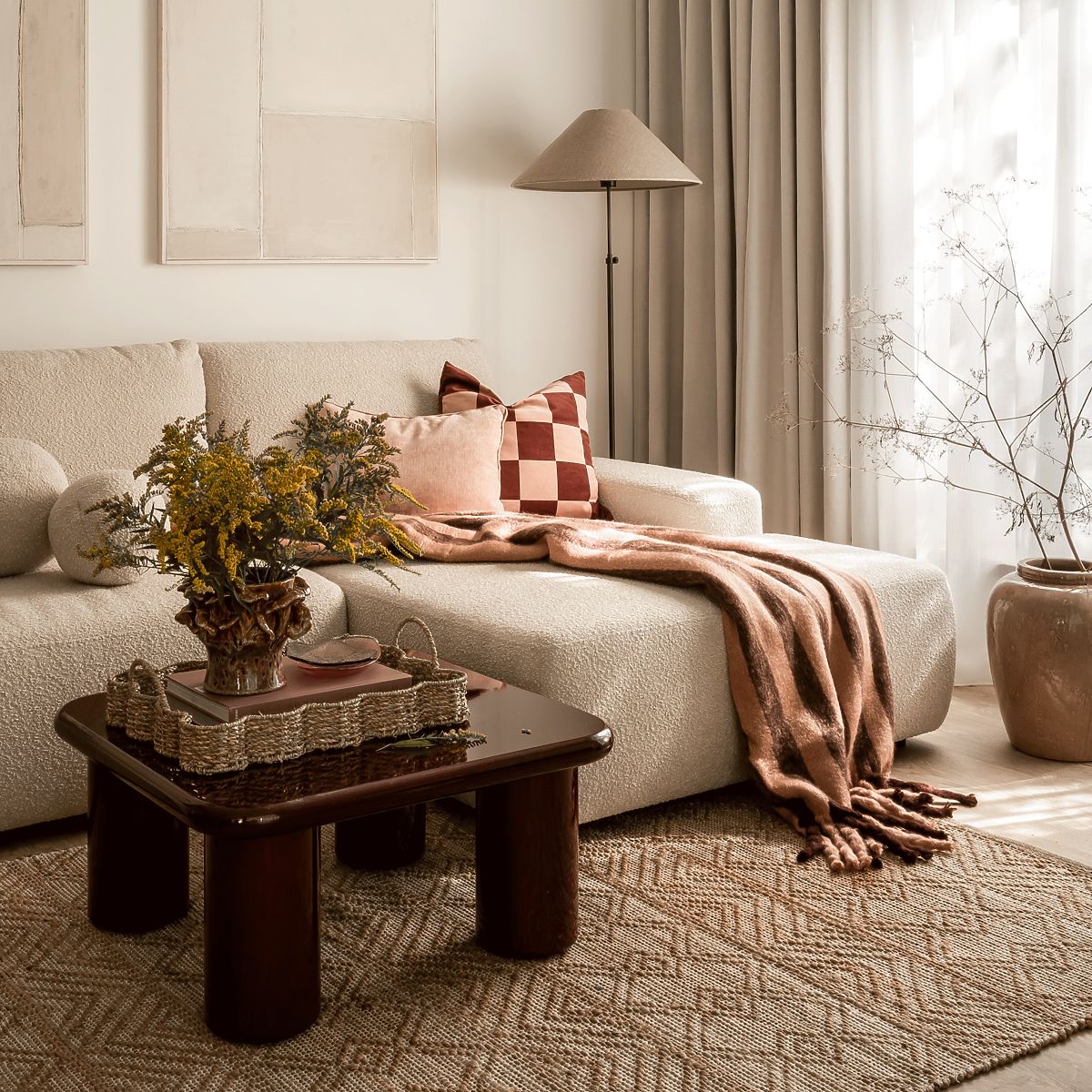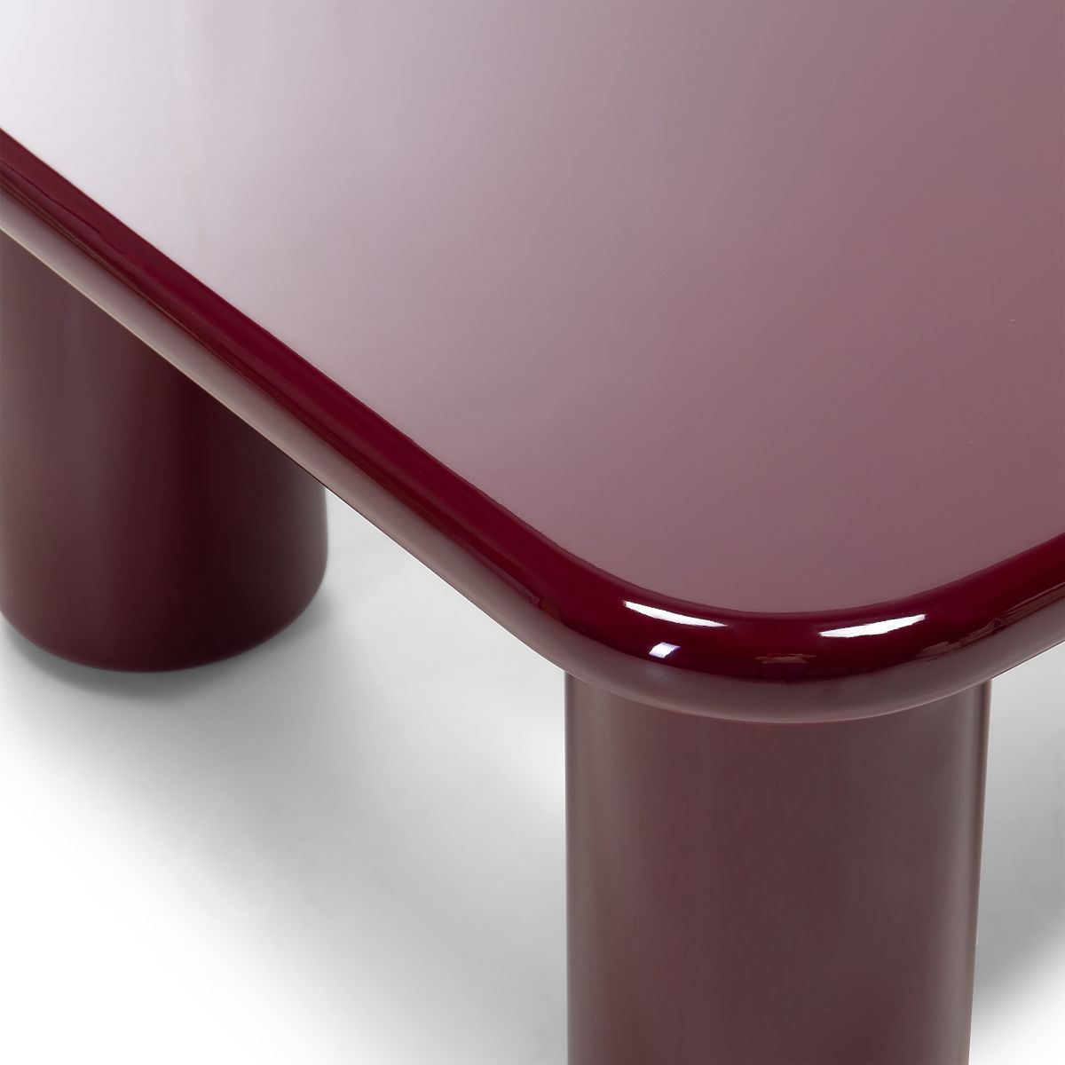 Konferenční stolek Cherry s lesklým burgundským povrchem a zaoblenými hranami. .. více