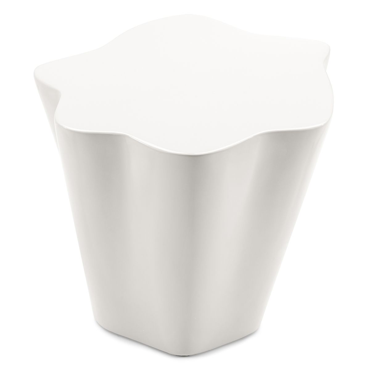 Lukafurniture.cz » Stoly a stolky / Konferenční stolky / Boční stolek Bow 49 cm, šedobéžový, lesklý, oblé tvary