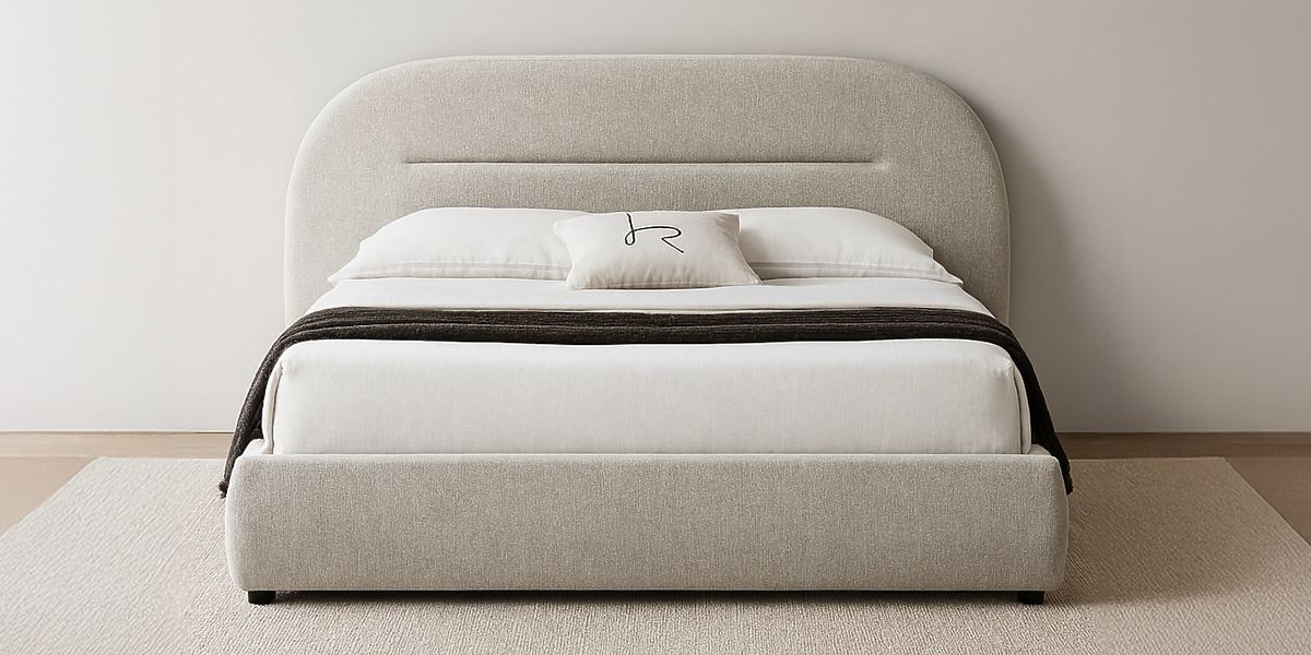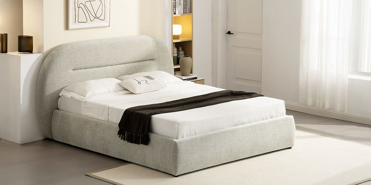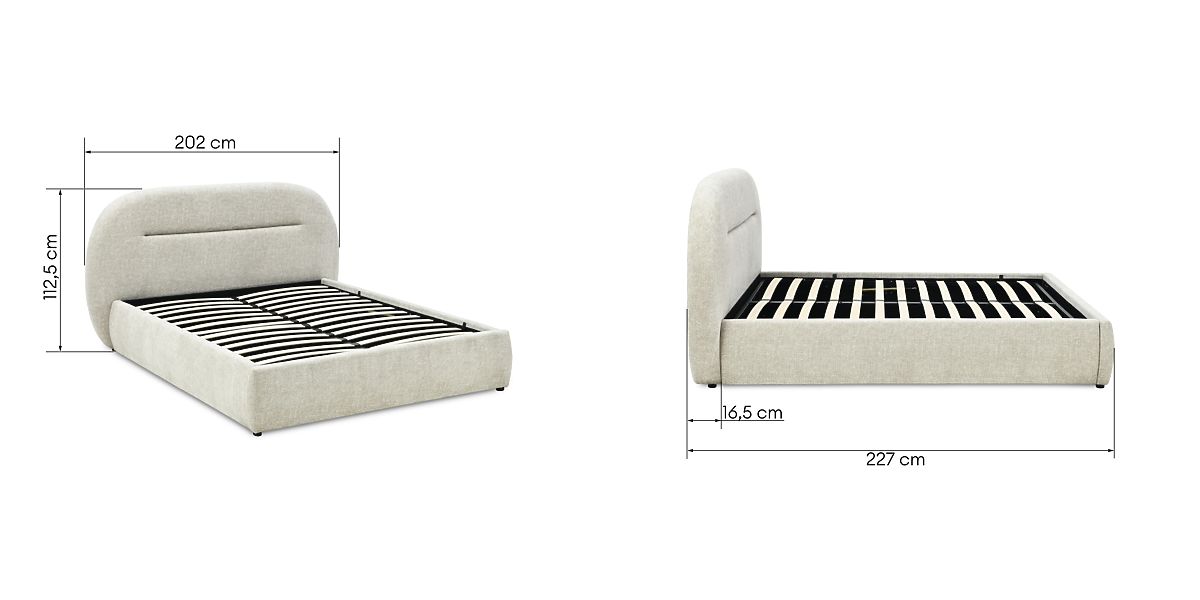 Lukafurniture.cz » Dům / Ložnice / Manželské postele / Postele 160x200 / Čalouněná postel Luno 160x200 cm, s roštem a úložným prostorem, světle béžová, zaoblená