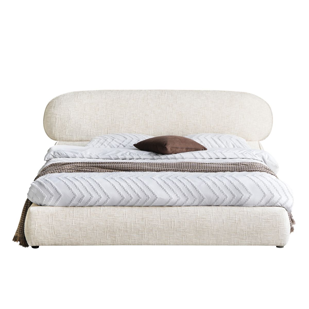 Lukafurniture.cz » Dům / Ložnice / Manželské postele / Postele 160x200 / Čalouněná postel Avola 160x200 cm, s roštem a úložným prostorem, světle béžová, zaoblená