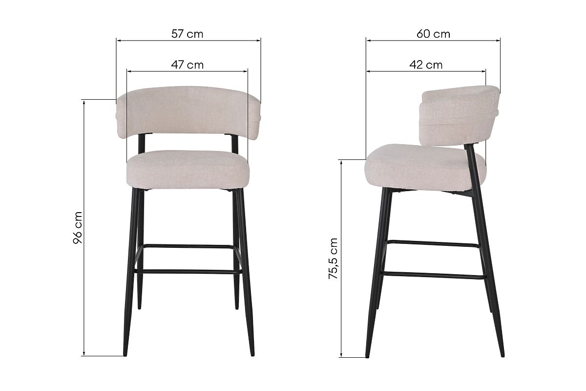 Elegantní barová stolička Rosario s krémovým čalouněním a černými nohami. .. více
