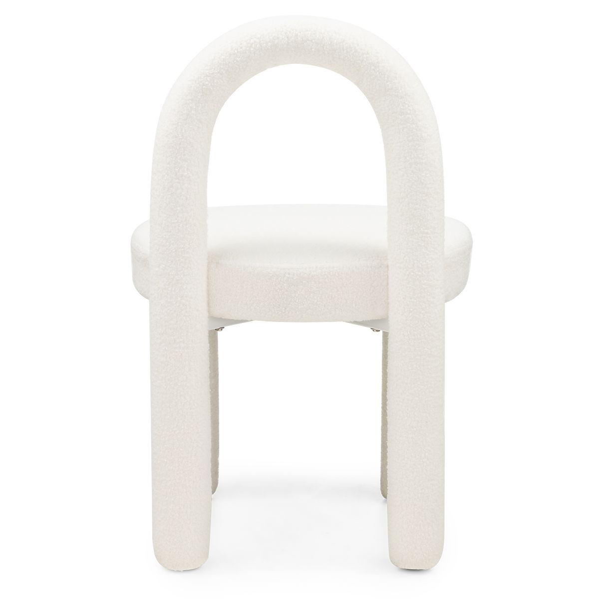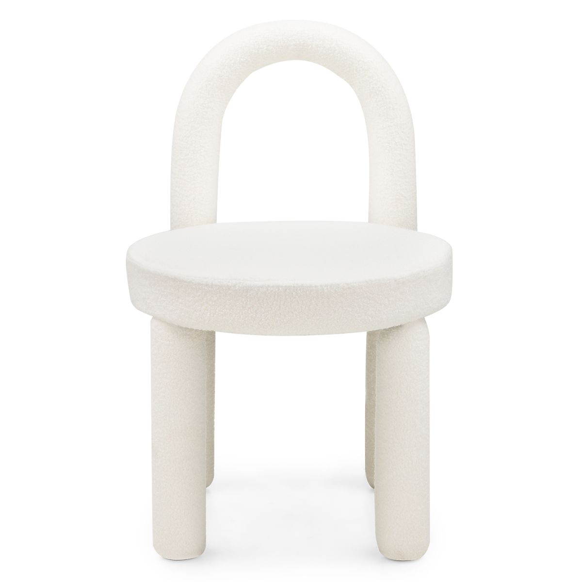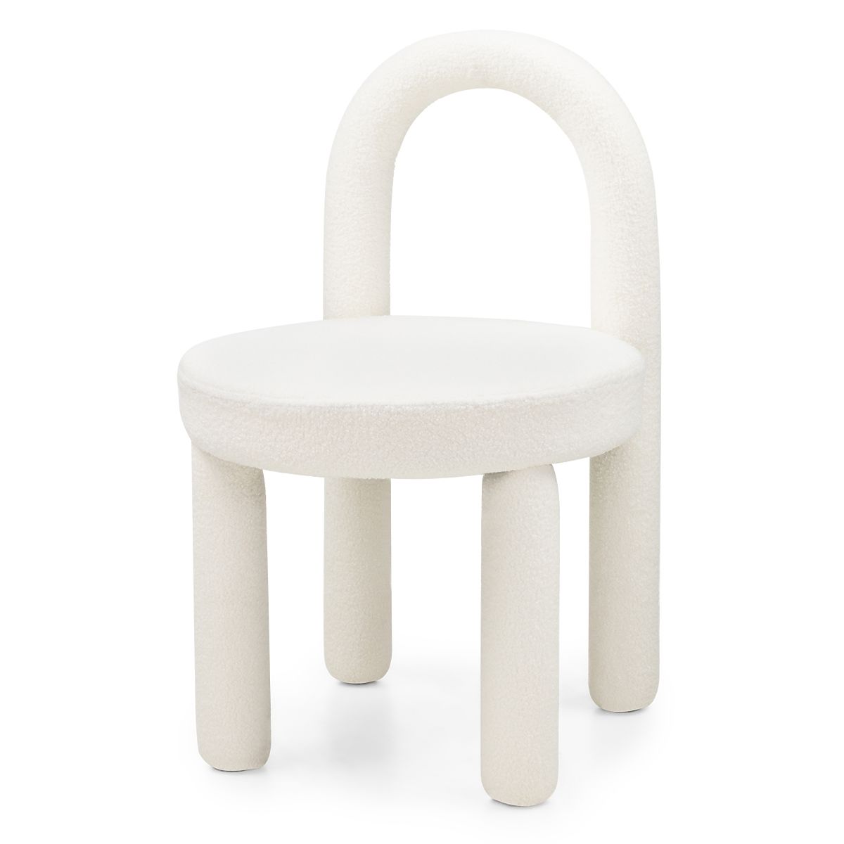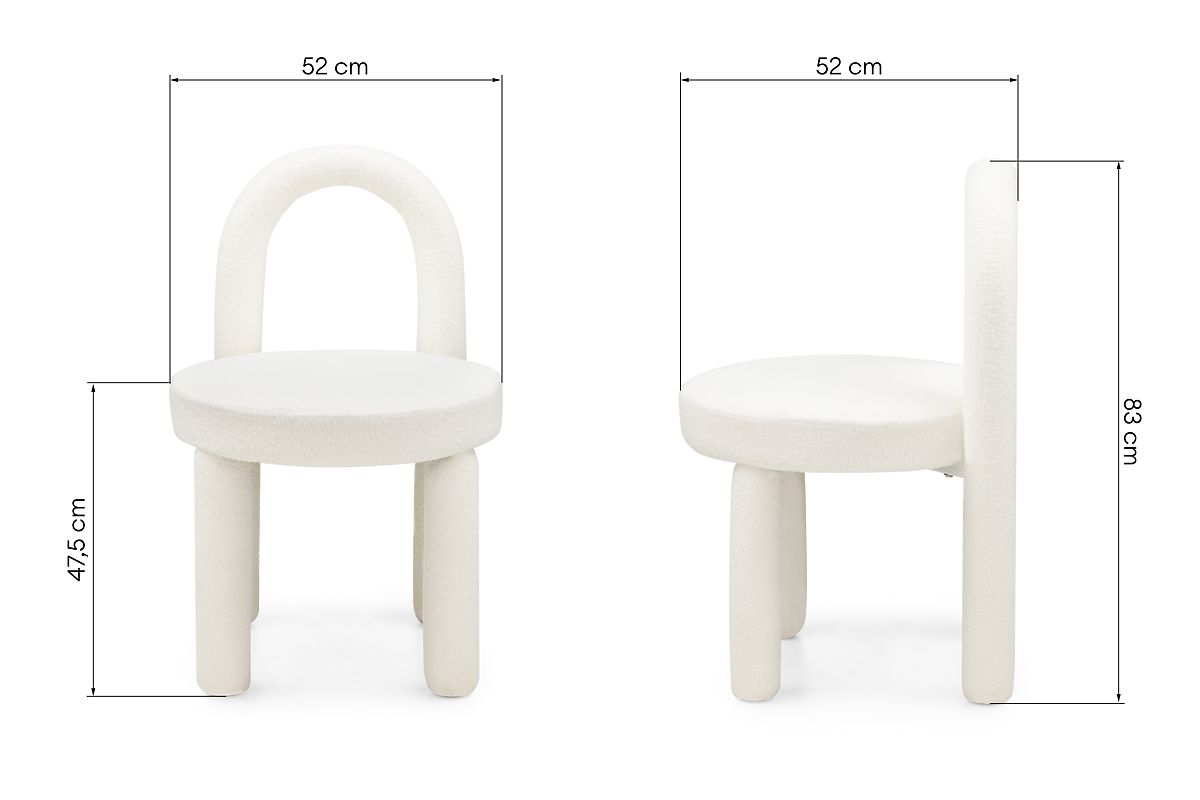 Židle Ivo je kvintesencí moderního designu, obohacená o výjimečné detaily a organické linie, které ji činí zajímavým prvkem každého interiéru. Její měkce zaoblený tvar a obloukově zakřivené opěradlo nejen přidávají eleganci, ale také ji činí oblíbeným místem pro chvíle relaxace. Měkká tkanina boucle v barvě ecru, pokrývající celou konstrukci židle, přináší do interiéru útulnost a jemný nádech luxusu. Pevná konstrukce zaručuje trvanlivost a promyšlený tvar dbá na ergonomii, zajišťující pohodlí při sezení po delší dobu. Židle Ivo se skvěle hodí jak k toaletnímu stolku, tak i do obývacího pokoje či jídelny – všude tam, kde je důležité spojení pohodlí s moderní estetikou.