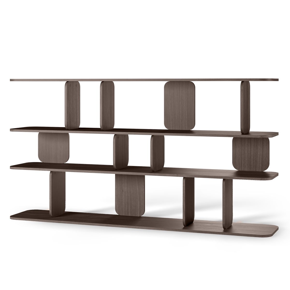 Moderní regál Tulumo s geometrickou harmonií a zaoblenými liniemi. .. více
