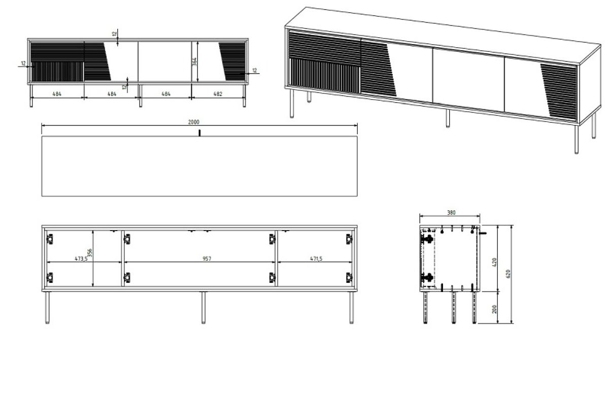 TV skříňka s rozměry 62cm/200cm/38cm, bílý mat. .. více