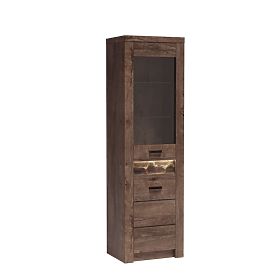 je možné zakoupit LED osvětlení desky nebo LED police; rozměry: 56/42/192; materiál: deska – laminovaná nábytková deska; hrana – ABS dýha; zadní část skříně – HDF deska; tvrzené sklo; úchyty – kovové; panty – kovové;