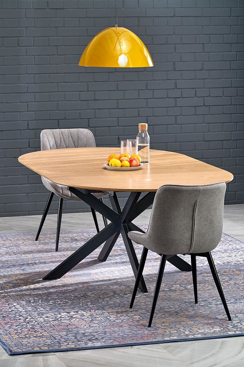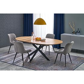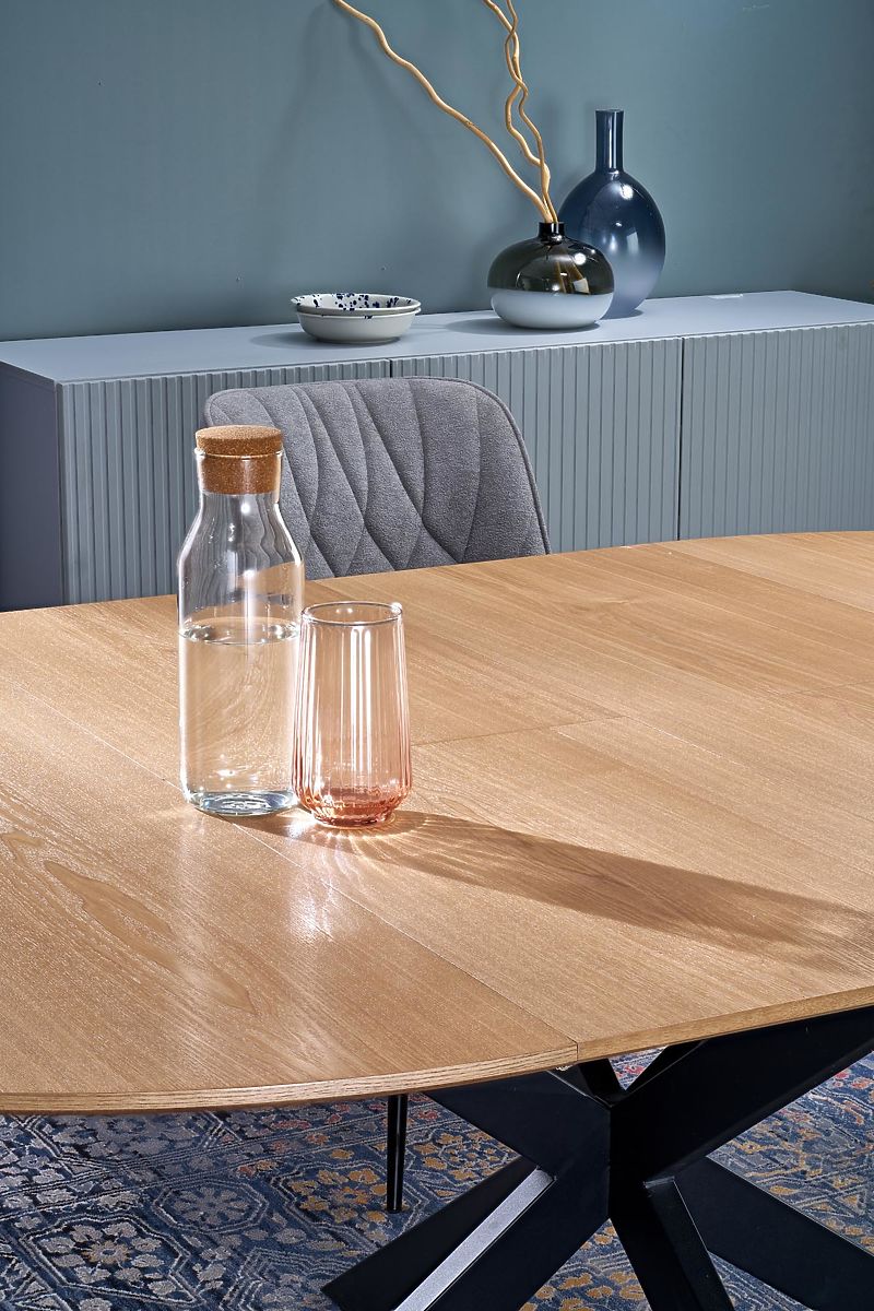 Rozkládací stůl z MDF a přírodní dýhy s černými ocelovými nohami. .. více