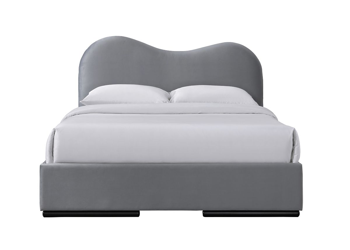 Postel se zásuvkami z šedé sametové tkaniny. .. více