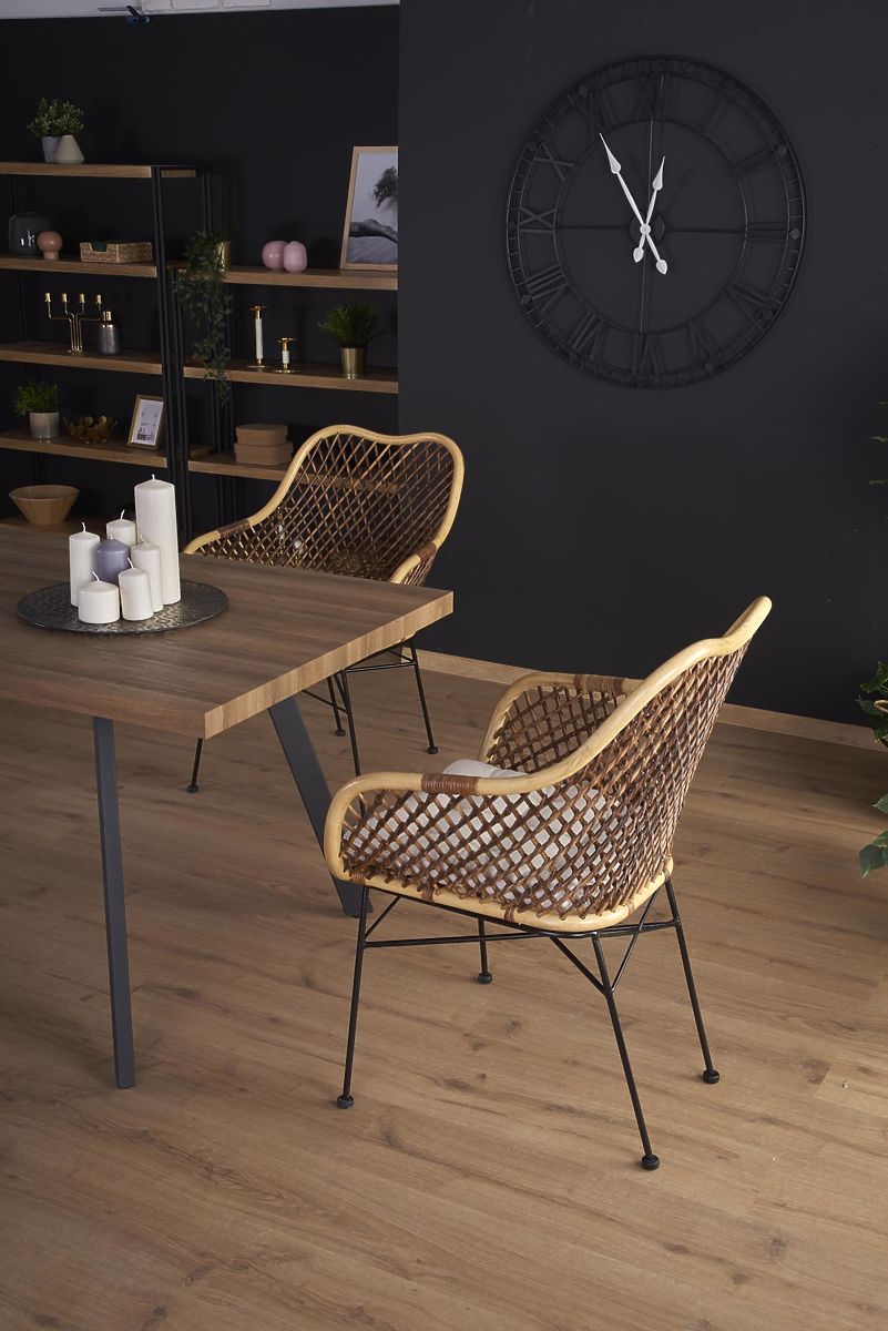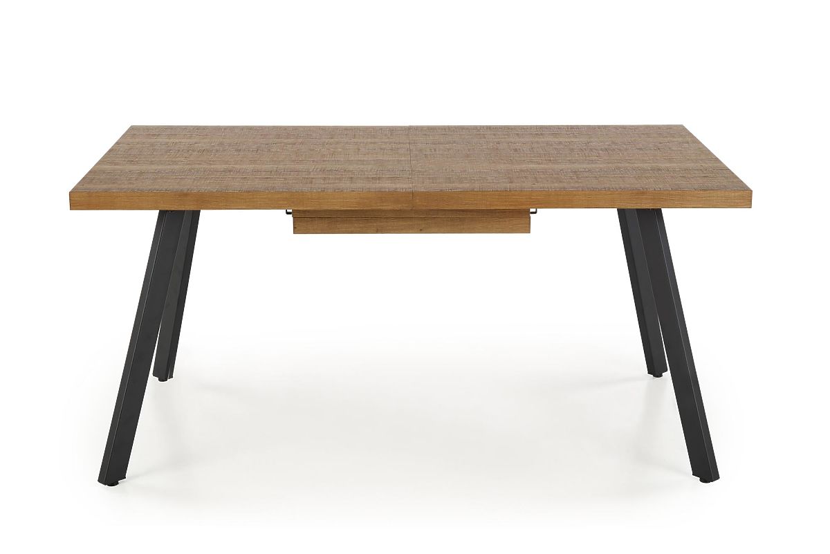 Rozkládací stůl s medově ořechovou deskou a černými nohami. .. více