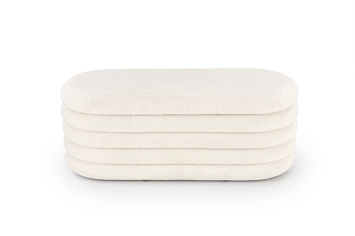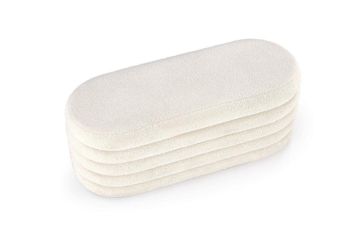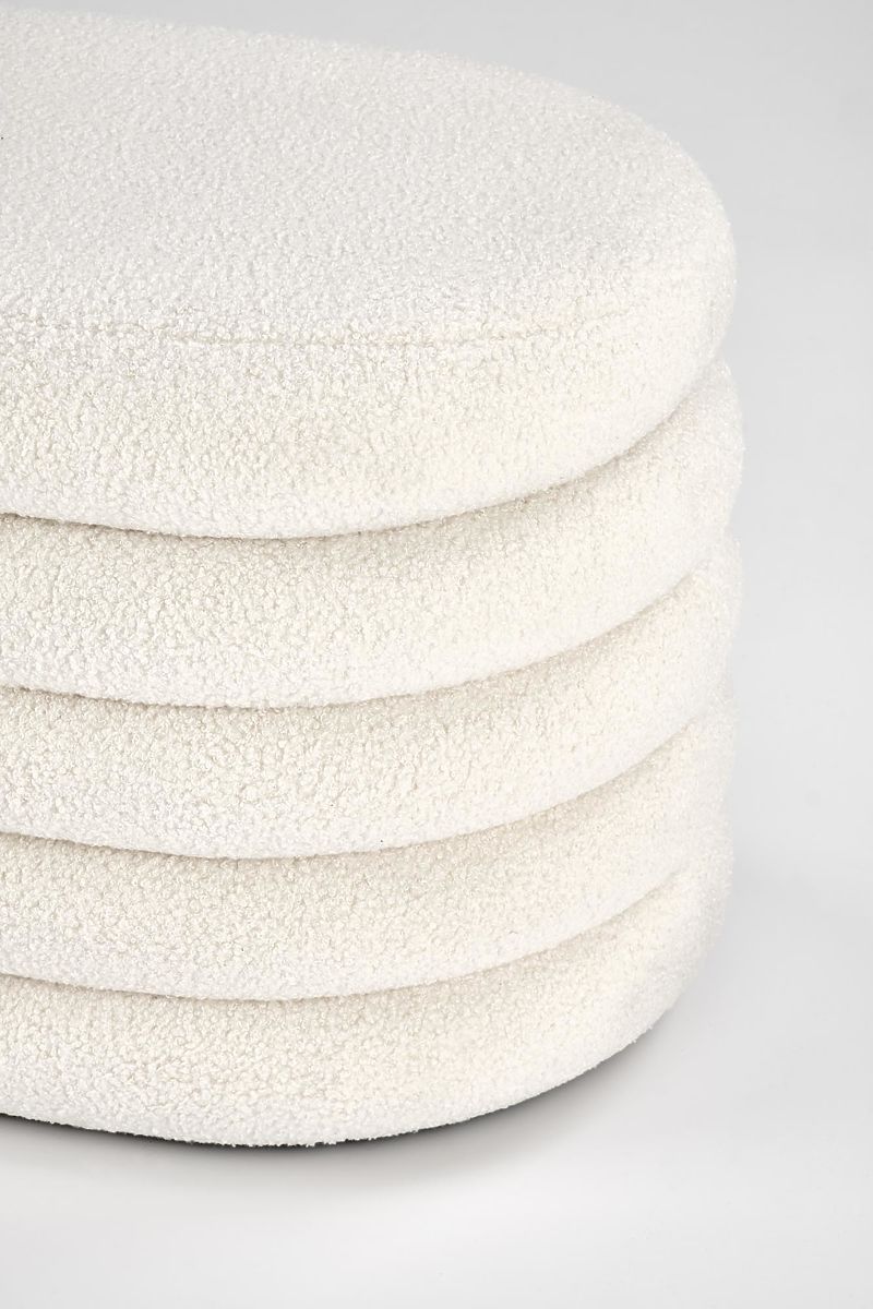 Taburet s úložným prostorem představuje praktický a elegantní doplněk do vašeho interiéru. Díky nadčasovému designu a jemnému čalounění z krémové boucle látky se hodí do moderních, skandinávských i klasických prostor.