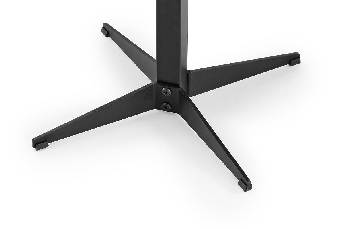 Stolek s deskou z bílého mramoru a černou konstrukcí. .. více
