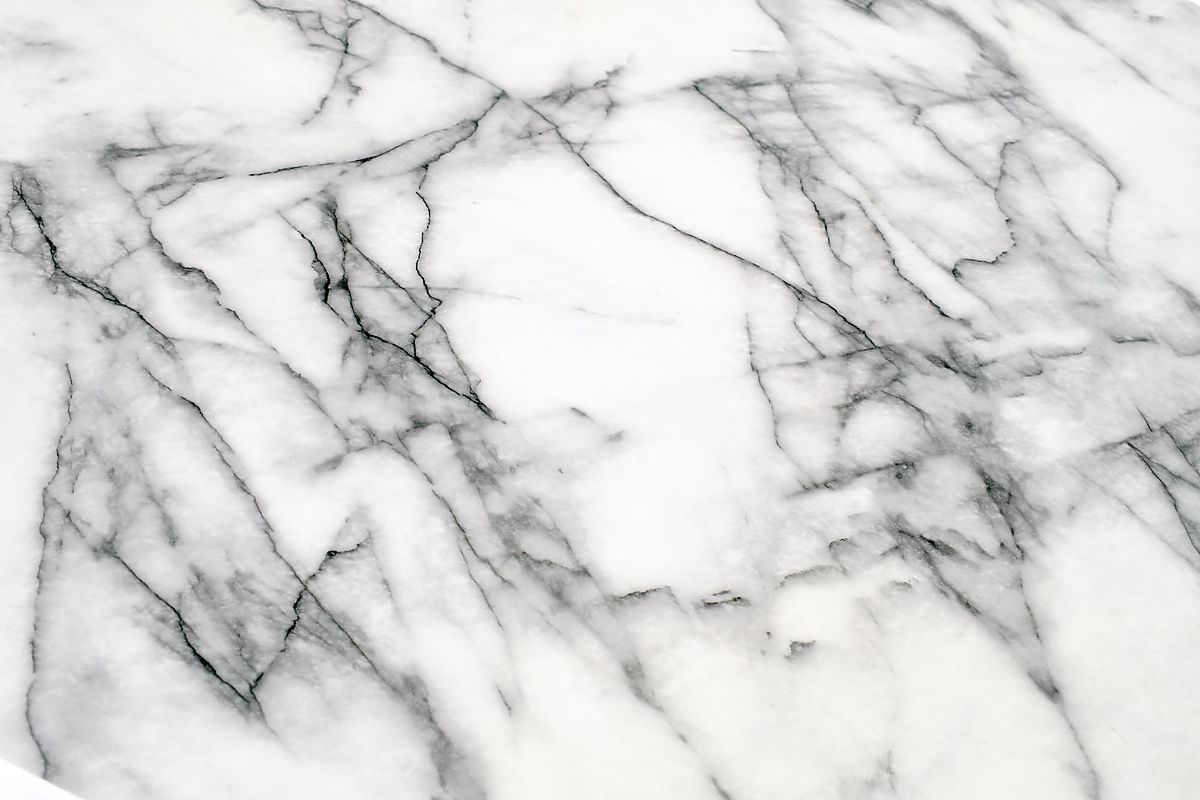 Stůl s deskou z bílého mramoru a černými nohami. .. více