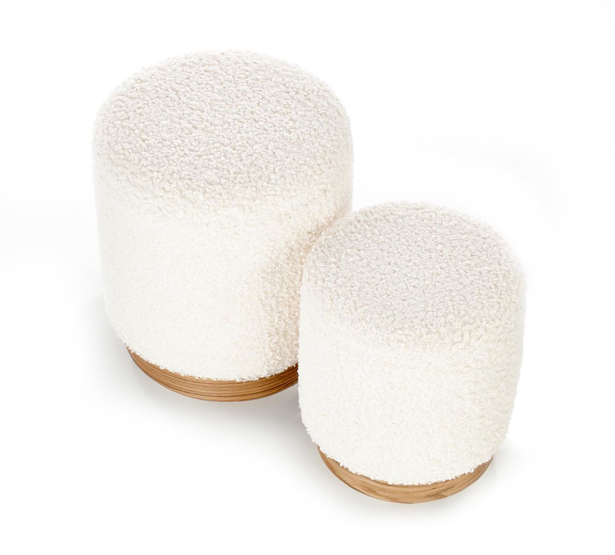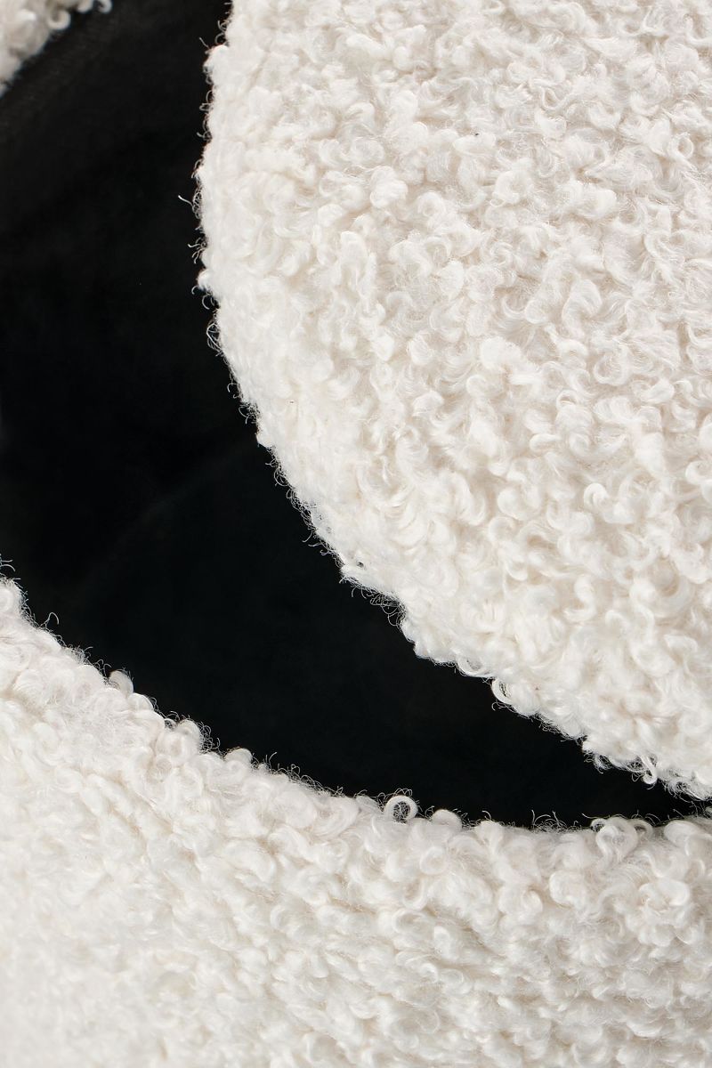 Taburety jsou vyrobeny z dýhované ohýbané překližky, která zajišťuje pevnost a stabilitu, a jsou čalouněny jemnou bouclé látkou v krémovém odstínu. Tento materiál působí hřejivě, elegantně a skvěle ladí s moderními, skandinávskými i minimalistickými interiéry.