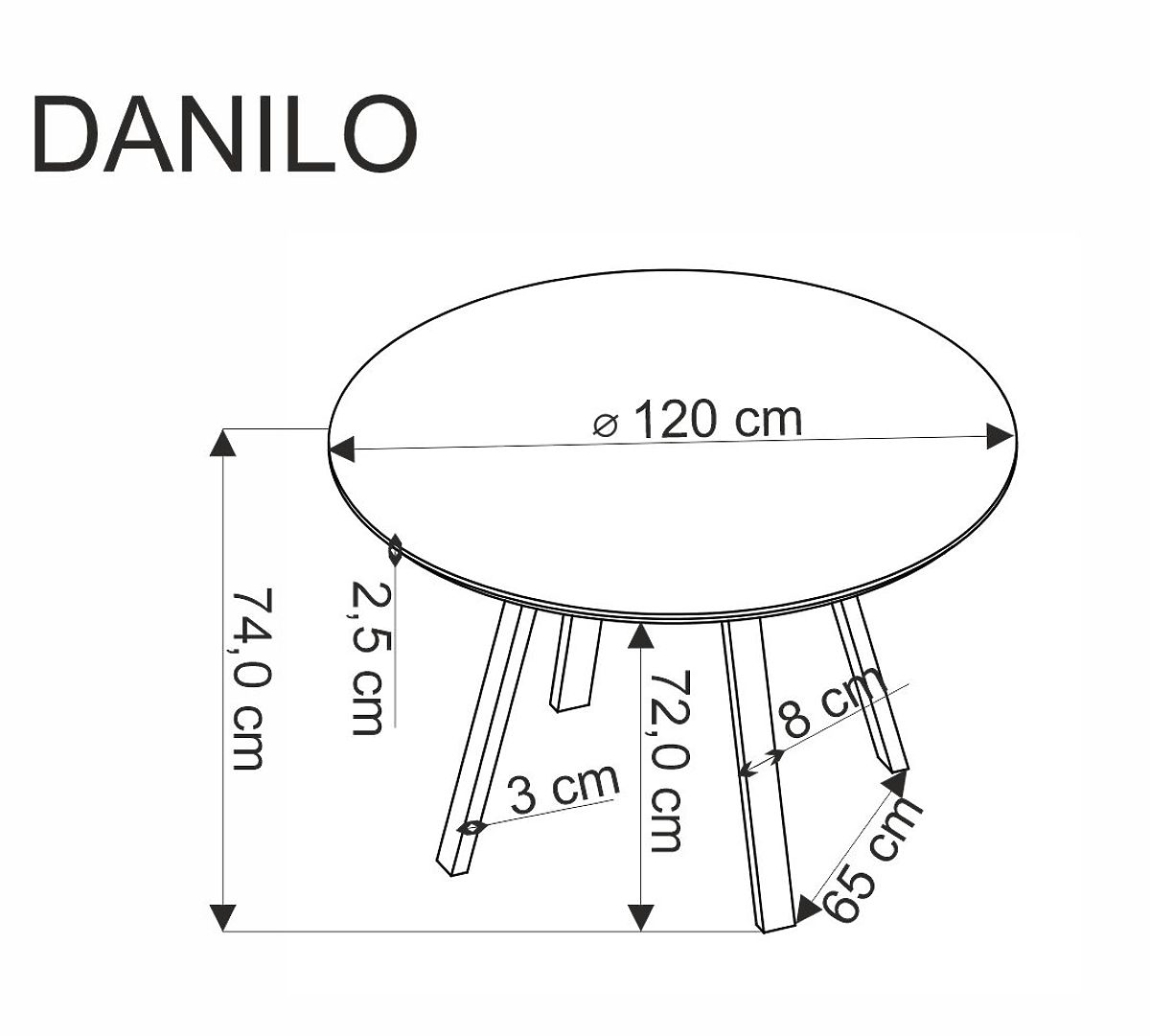 Kulatý stůl DANILO s ořechovou deskou a černými nohami. .. více