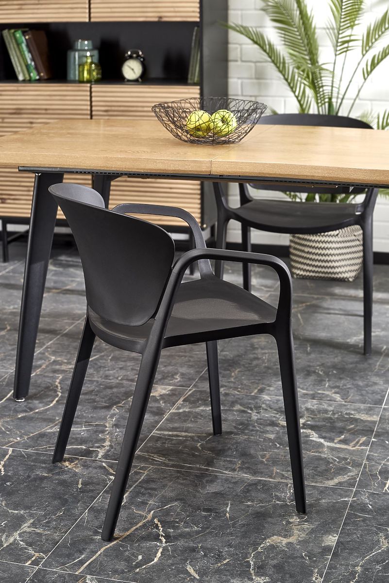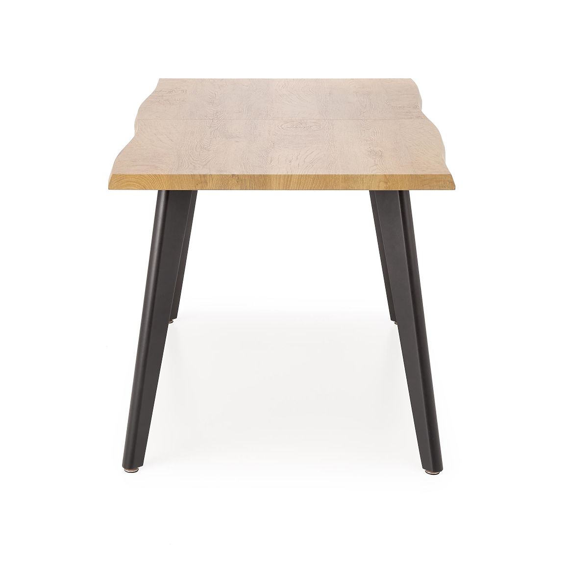Rozkládací stůl s přírodní dubovou deskou a černými nohami. .. více