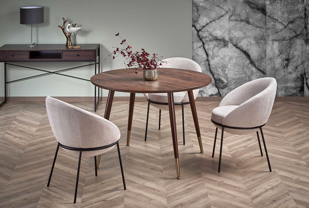 Lukafurniture.cz » Dům / Jídelna a kuchyně / Jídelní stoly / DOMENICO stůl deska - ořech, nohy - ořech / zlatá (2p=1ks)