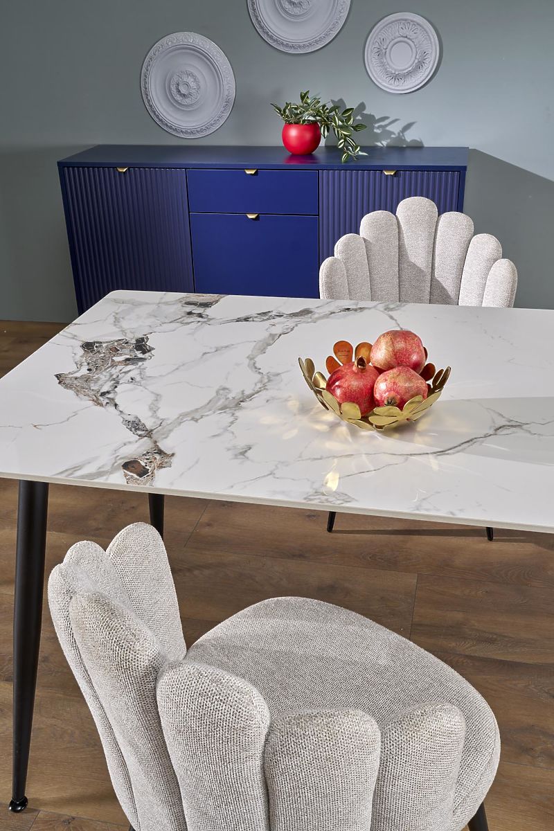 Lukafurniture.cz » Jídelna a kuchyně / Jídelní stoly / EMILIO 140 stůl deska - bílý mramor, nohy - černé (2p=1ks)