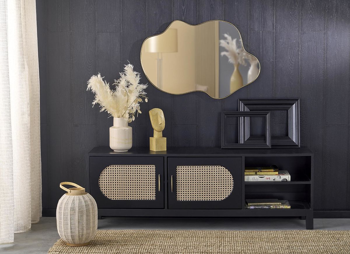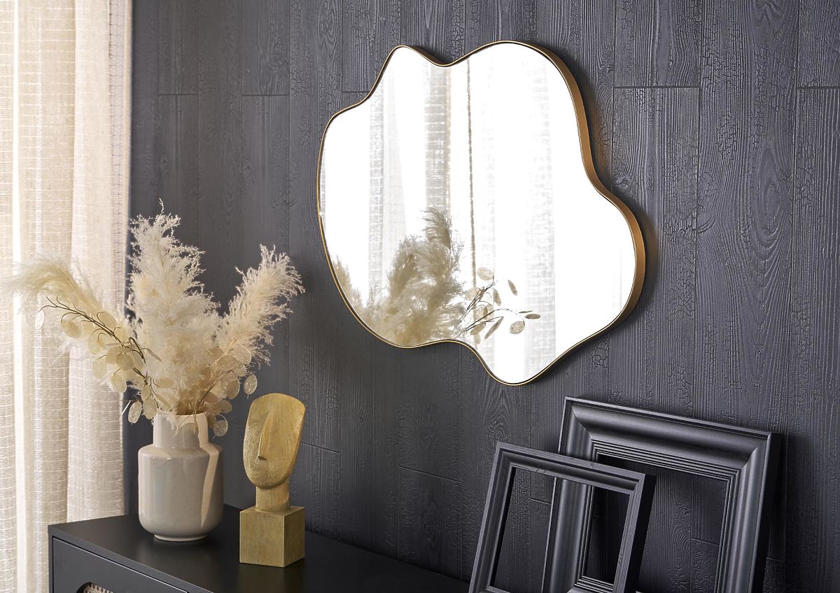 Nástěnné zrcadlo se zlatým rámem o rozměrech 90/56/1,5 cm. .. více