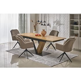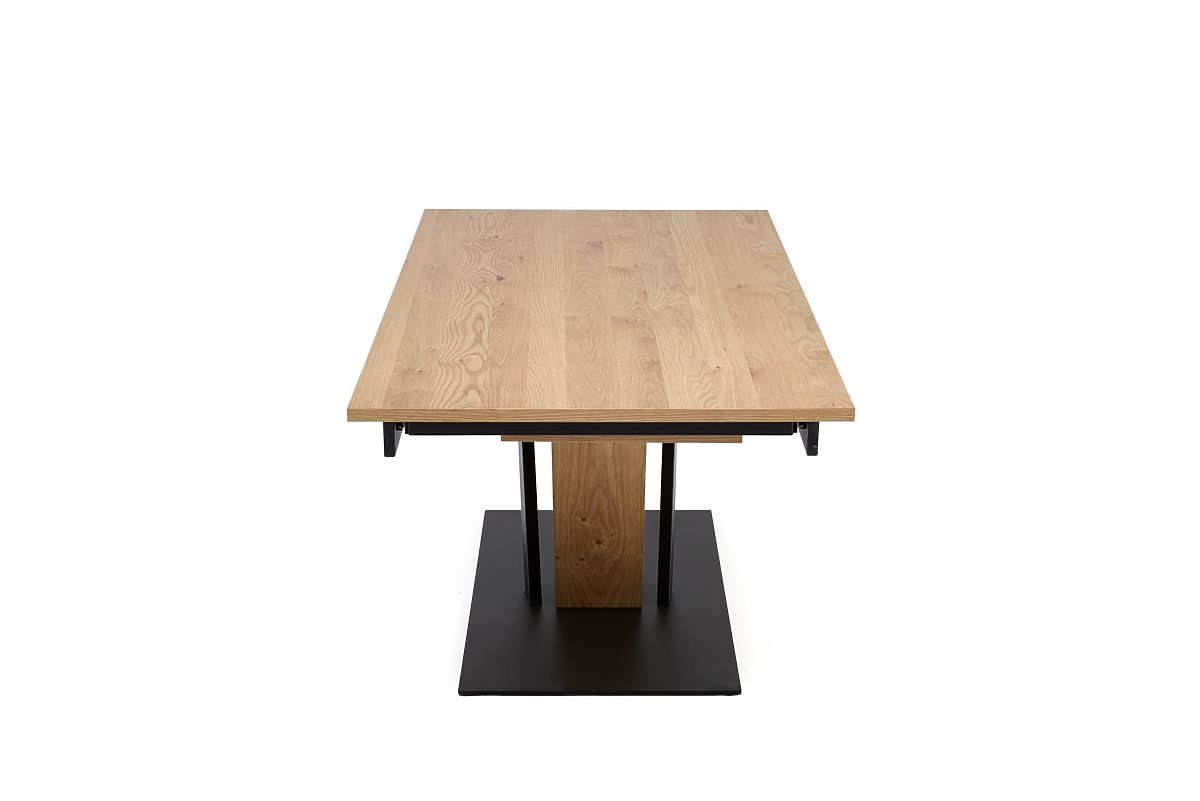 Rozkládací stůl z MDF a dubové dýhy s černými ocelovými nohami. .. více