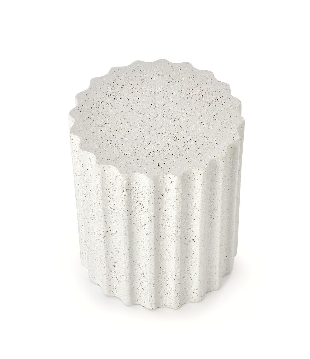 Lavice Fara zaujme na první pohled svou kompaktní formou a originálním sloupovým provedením. Kulatá deska podepřená jednou centrální nohou vytváří vizuálně soudržný celek, který doplňují dekorativní svislé drážky na bocích. Díky svým rozměrům se snadno začlení i do menších prostor, aniž by působila robustně.