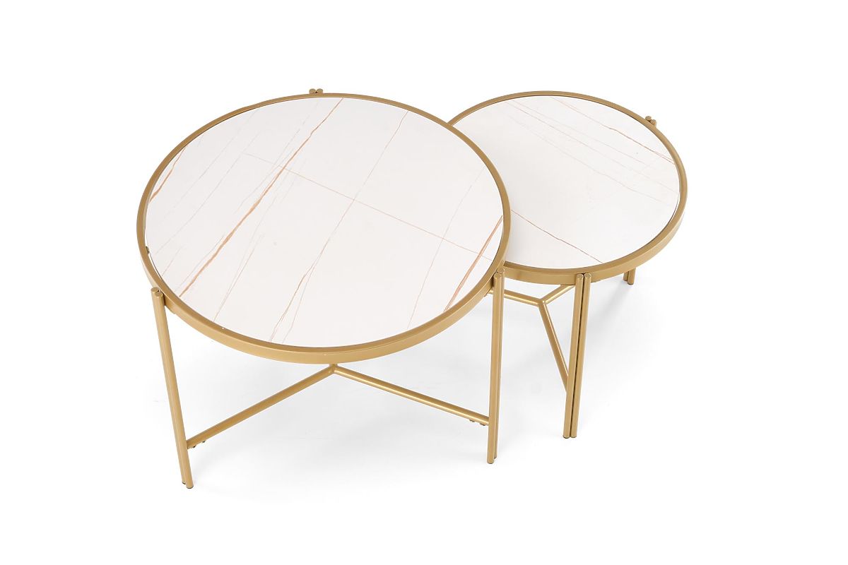 Lukafurniture.cz » Dům / Obývací pokoj / Konferenční stolky / FATIMA sada 2 stolků, bílý mramor / zlatá (1p=1ks)