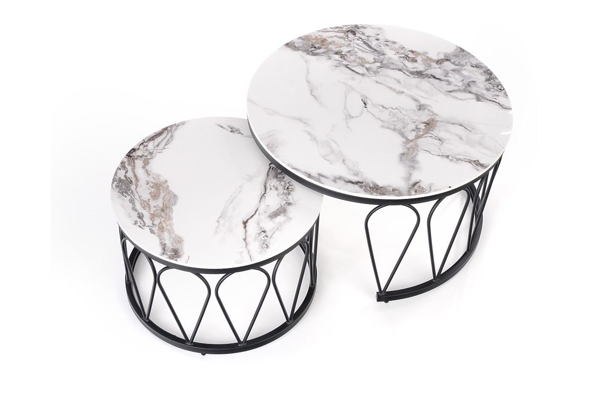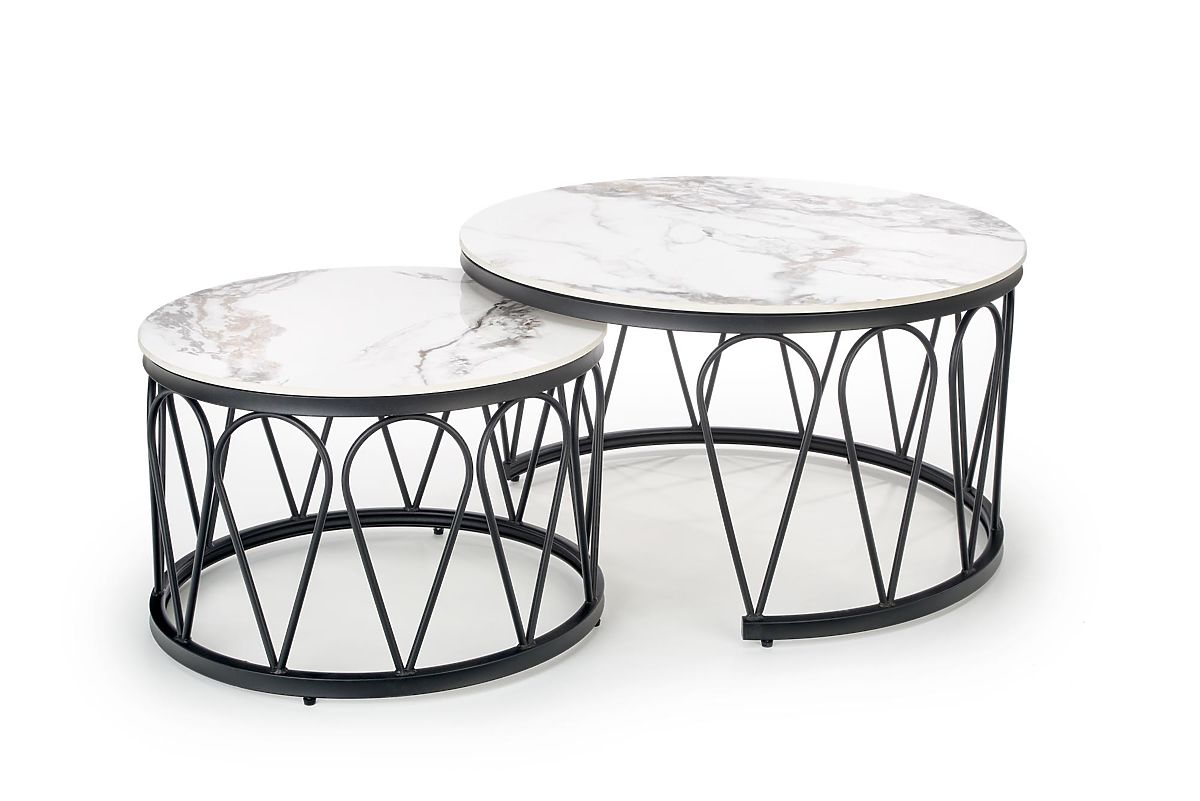 Díky kombinaci většího a menšího stolku lze sestavu využít jako centrální prvek před sedací soupravou nebo jednotlivé stoly rozmístit k více místům k sezení. Kulaté desky bez ostrých hran zvyšují komfort pohybu a přispívají k bezpečnému a příjemnému používání v každodenním provozu.
