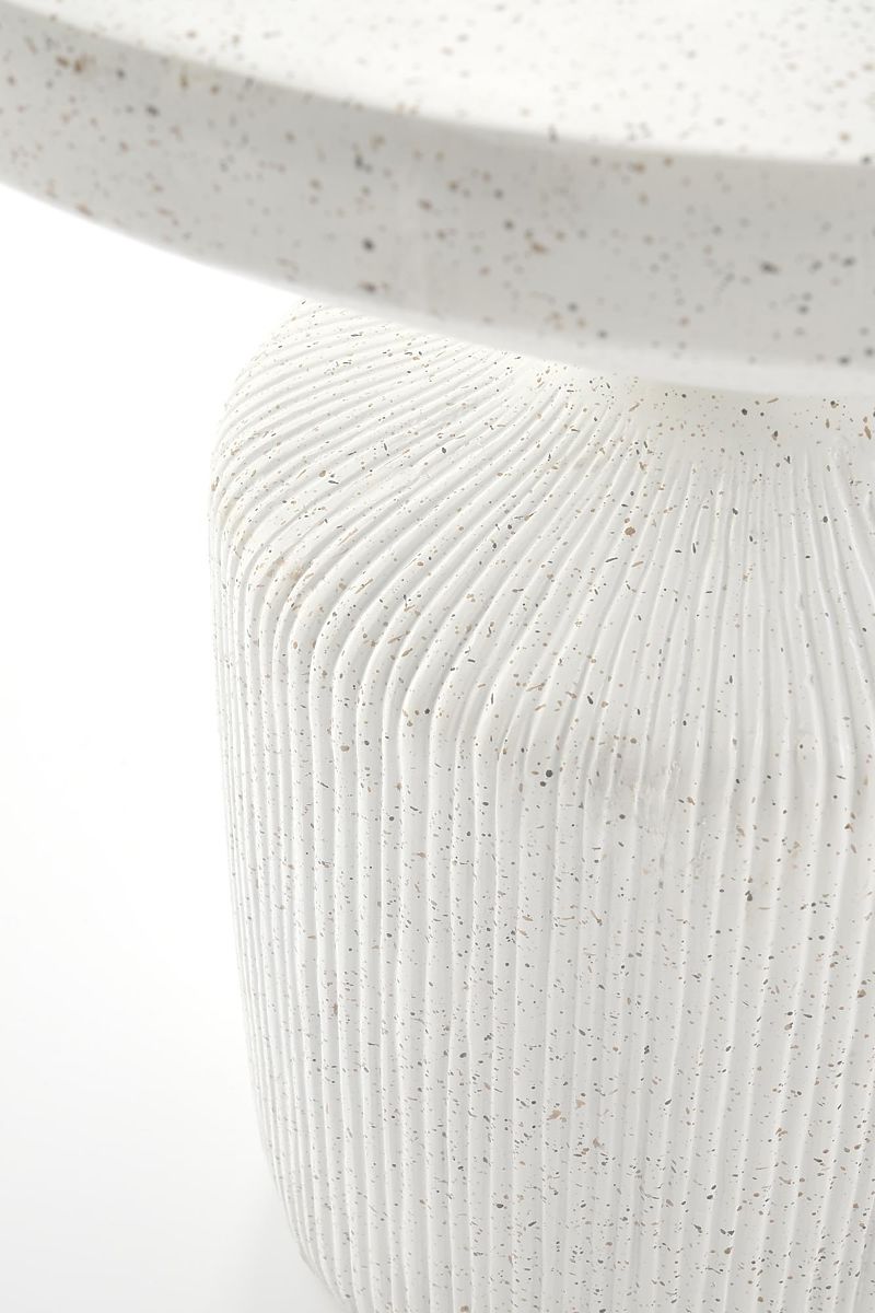 Kulatý stolek Gorelli je stylovým doplňkem vhodným do všech typů interiérů. Svým originálním tvarem a moderním designem přidá eleganci každému obývacímu pokoji a zároveň poskytuje praktický prostor pro odložení knih, skleničky či dekorací.