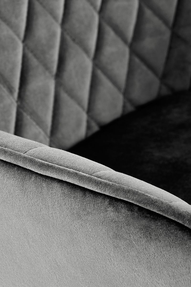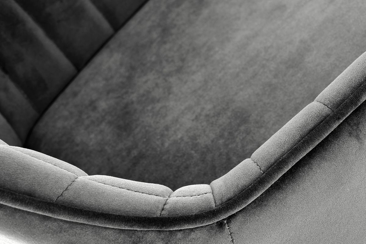 Židle je čalouněna příjemnou sametovou látkou, která je měkká na dotek a dodává interiéru luxusní nádech. O vysoký komfort sezení se stará kvalitní PUR pěna v sedáku.