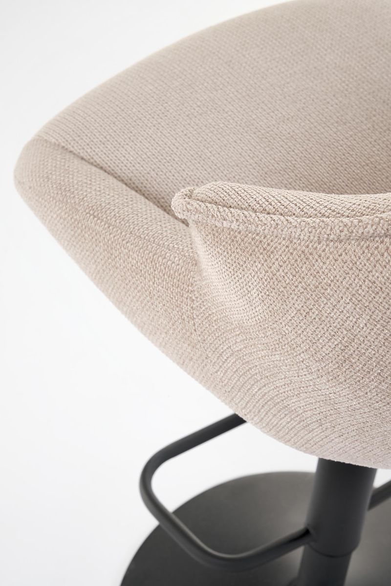 Barová židle s černými nohami a béžovým sedákem. .. více
