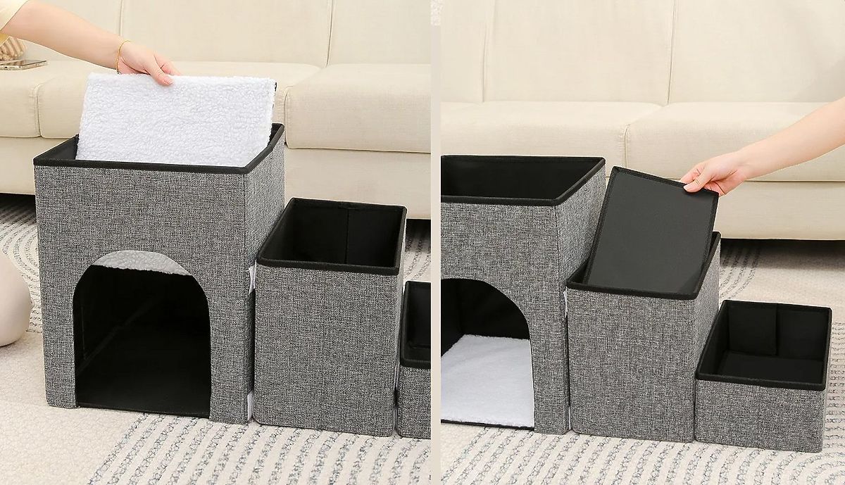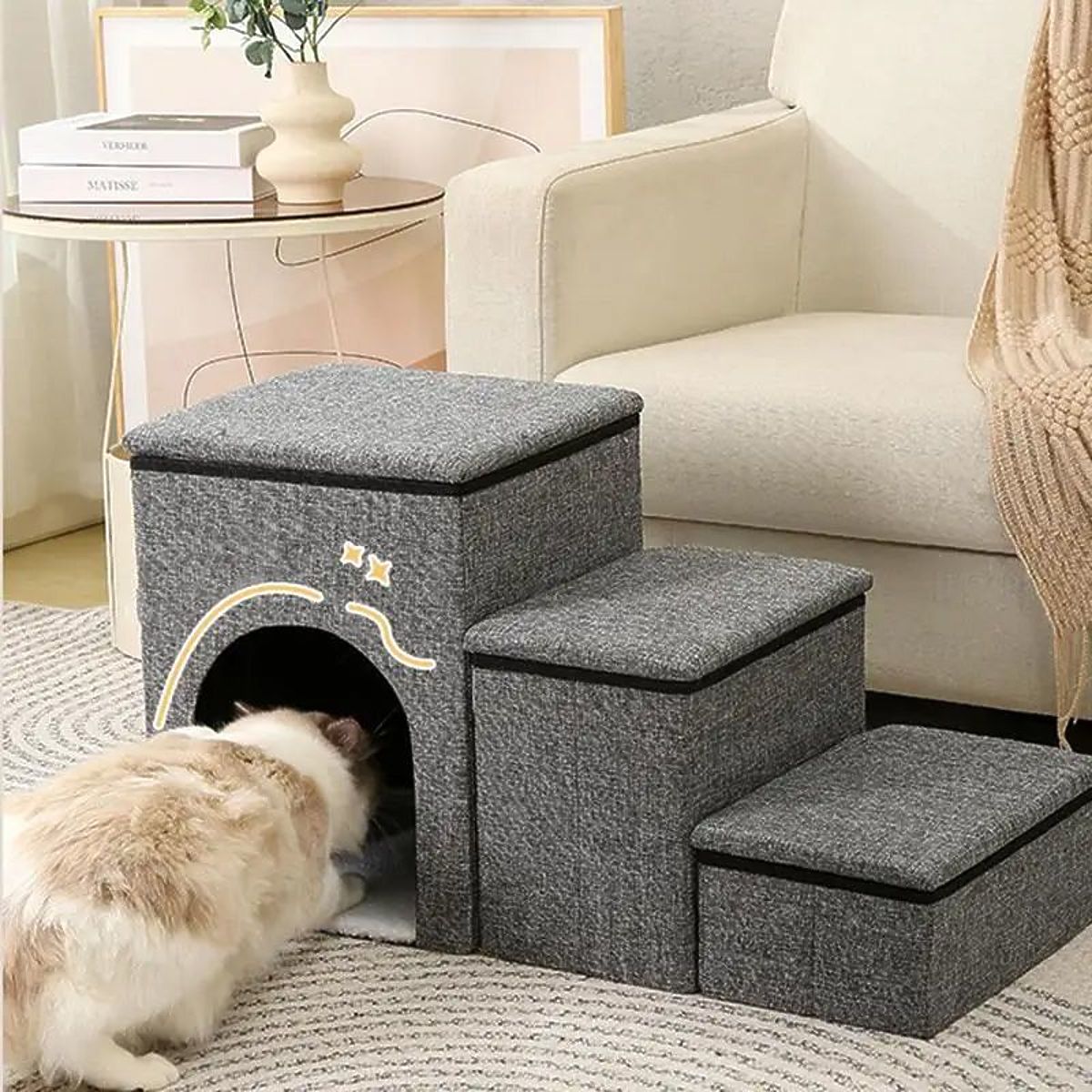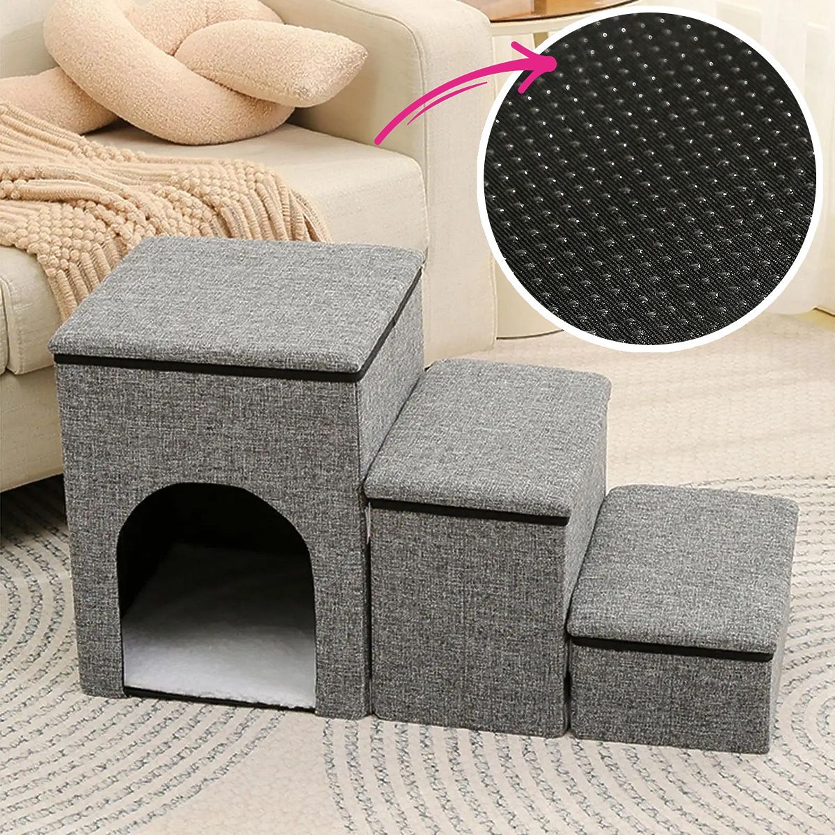 Představujeme praktické a funkční skládací schůdky pro psa, které usnadní vašemu mazlíčkovi přístup na vyšší místa, jako je pohovka nebo postel. Pevná konstrukce zajišťuje, že jsou odolné vůči intenzivnímu používání. Boudička v prvním schůdku, vystlaná měkkým materiálem, je ideálním místem, kde se váš mazlíček může schovat, odpočinout si a cítit se bezpečně. Vestavěné úložné prostory jsou ideální pro uložení hraček, pamlsků nebo jiných potřeb pro psa. Schůdky lze snadno složit, což usnadňuje jejich skladování a přepravu.
