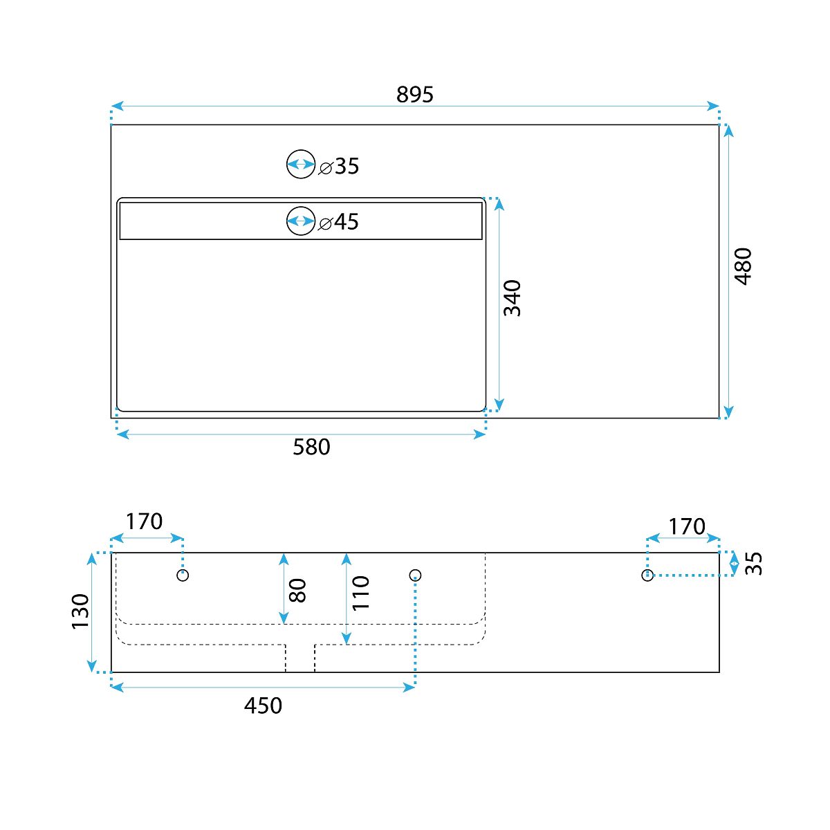 Rozměry: délka 895 mm, šířka 480 mm, což zajišťuje pohodlí při používání.