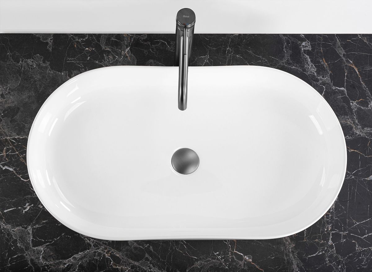 Moderní a elegantní nadčasové umyvadlo Rea Cleo 71 je skvělou volbou pro ty, kteří si cení minimalistický design a funkčnost. Jeho jemný oválný tvar a dokonale hladký, bílý povrch zajišťují, že se dokonale hodí jak do koupelen zařízených v klasickém, tak i moderním stylu. Vyrobeno z vysoce kvalitní keramiky, vyznačuje se trvanlivostí a odolností vůči každodennímu používání. Umyvadlo je určeno k montáži na desku, což umožňuje maximální využití koupelnového prostoru.