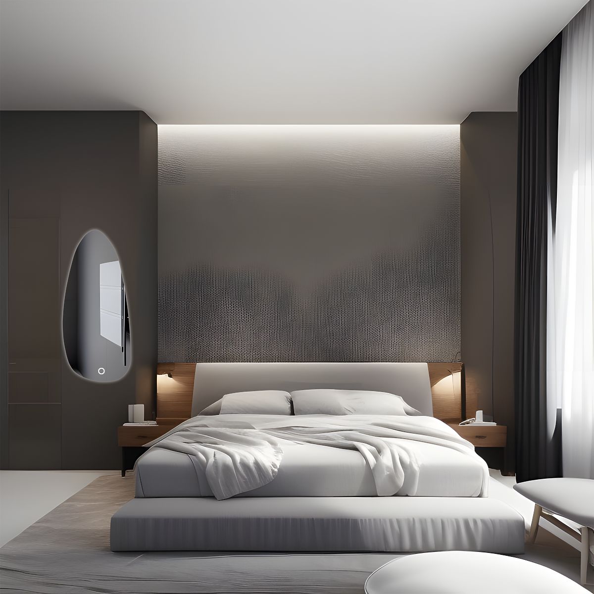 Podélné LED zrcadlo s nepravidelným, organickým tvarem je skvělou volbou pro ty, kteří si cení moderního designu a vysoké kvality zpracování. Jemné, neutrální LED osvětlení poskytuje vynikající podmínky pro každodenní péči a vytváří příjemnou atmosféru v koupelně. Vestavěný dotykový spínač, který je podsvícený modře při aktivní funkci a červeně při vypnutém osvětlení, zaručuje intuitivní ovládání a elegantní vizuální efekt. Bílý napájecí kabel o délce 105 cm usnadňuje montáž.