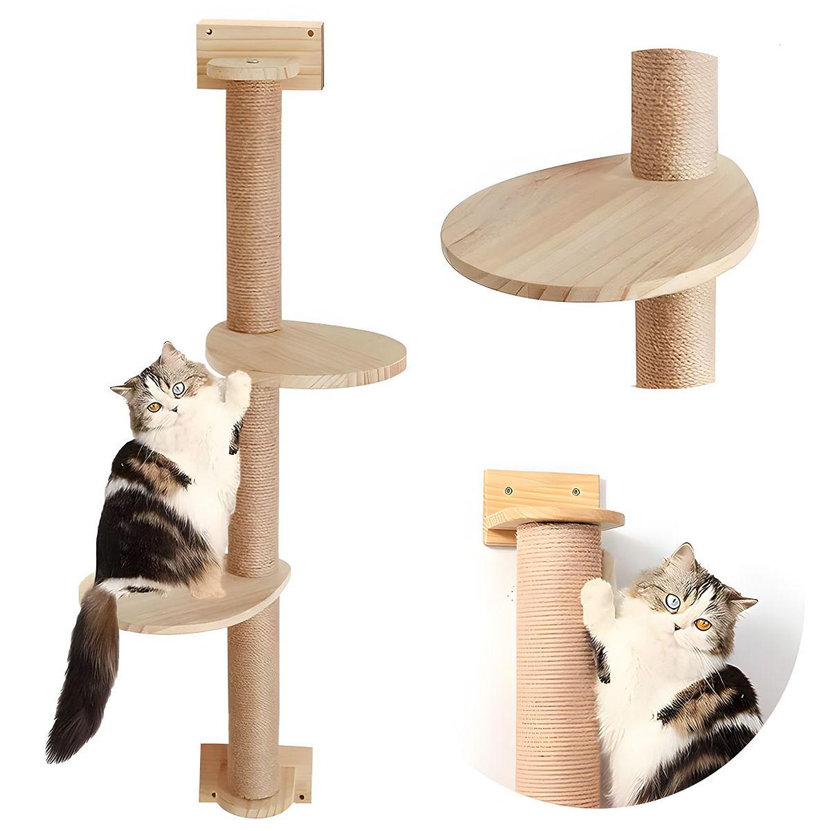Dopřejte své kočce ideální místo pro šplhání, škrábání a pozorování okolí! Naše nástěnné škrabadlo je praktické a stylové řešení, které se skvěle hodí do každého interiéru – nezabírá místo na podlaze a zároveň nabízí vašemu mazlíčkovi spoustu atrakcí. Škrabadlo připevněné ke zdi je vybaveno pevným sloupkem obaleným sisalem, který je ideálním místem pro škrábání. Dvě stabilní dřevěné police umožňují kočce šplhání a odpočinek na různých úrovních. Je to ideální řešení pro aktivní a zvědavé kočky.