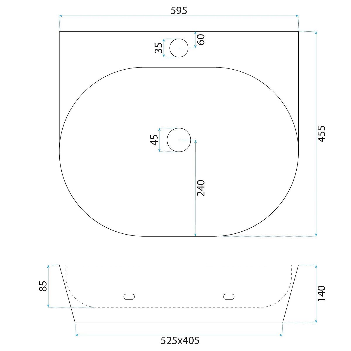 Nadstolní / nástěnné umyvadlo Rea Kim 60