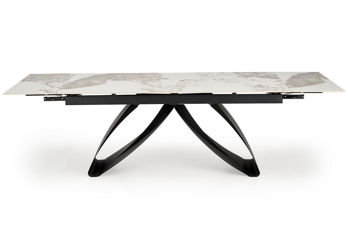 Lukafurniture.cz » Jídelna a kuchyně / Jídelní stoly / HILARIO rozkládací stůl, deska - bílý mramor, nohy - černé (3p=1ks)