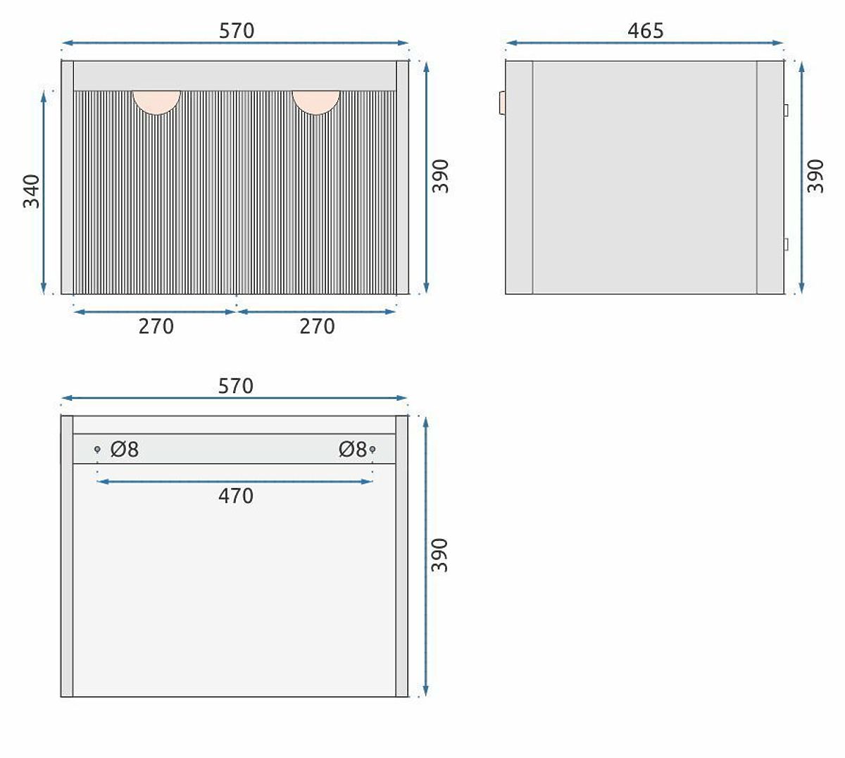 Moderní koupelnová sada Mario – skříňka s umyvadlem + skříňka se zrcadlem Sada koupelnového nábytku Mario je návrh, který kombinuje stylový vzhled s každodenní funkčností. Skvěle se hodí do moderních koupelen, kde záleží na pohodlí a promyšlené organizaci prostoru. Souprava sestávající z závěsné skříňky pod umyvadlo a skříňky se zrcadlem je hotovým řešením, které umožňuje vytvořit praktickou a jednotnou umyvadlovou zónu bez nutnosti hledání samostatných prvků. Minimalistická forma, která se hodí všude Model Mario se vyznačuje charakteristickými, vertikálně rýhovanými čely, které dodávají celku moderní a dynamický vzhled. Na výběr jsou dvě barevné varianty – grafitová a bílá, obě doplněné elegantní úchytkou v měděné barvě. Díky tomu se sada skvěle hodí k módním aranžmá, jak v tlumené, tak výraznější verzi. Praktická řešení pro každodenní použití Skříňka se zrcadlem je vybavena otevřenými policemi, které zajišťují rychlý přístup k denním kosmetickým přípravkům. Dolní skříňka pojme větší předměty, jako jsou čisticí prostředky nebo kosmetika v lahvích. Celá sada je montována na stěnu, což nejen opticky zvětšuje prostor, ale také usnadňuje udržování čistoty kolem nábytku. Umyvadlo přizpůsobené celku Součástí je keramické umyvadlo s otvorem na baterii, přizpůsobené velikostí dolní skříňce. Jeho univerzální forma dobře ladí se zbytkem sady, tvořící jednotný a estetický celek. Mario je sada, která nabízí jednotný vzhled a praktická řešení – připravena k montáži a okamžitému použití v každé současné koupelně.