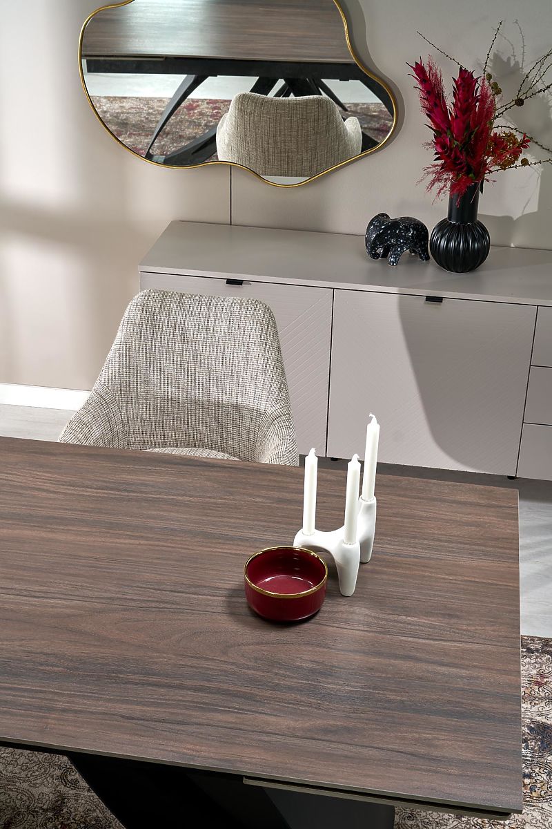 Lukafurniture.cz » Jídelna a kuchyně / Jídelní stoly / HILARIO rozkládací stůl, deska - ořechová, nohy - černé (3p=1ks)